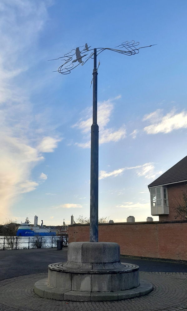 I do love a weather vane and this one called Flight is along the banks of the River Wear. It is there to be admired and has seating around its base for your pleasure. On the post is a note made from plated metal, to look like it was torn from a spiral notepad.