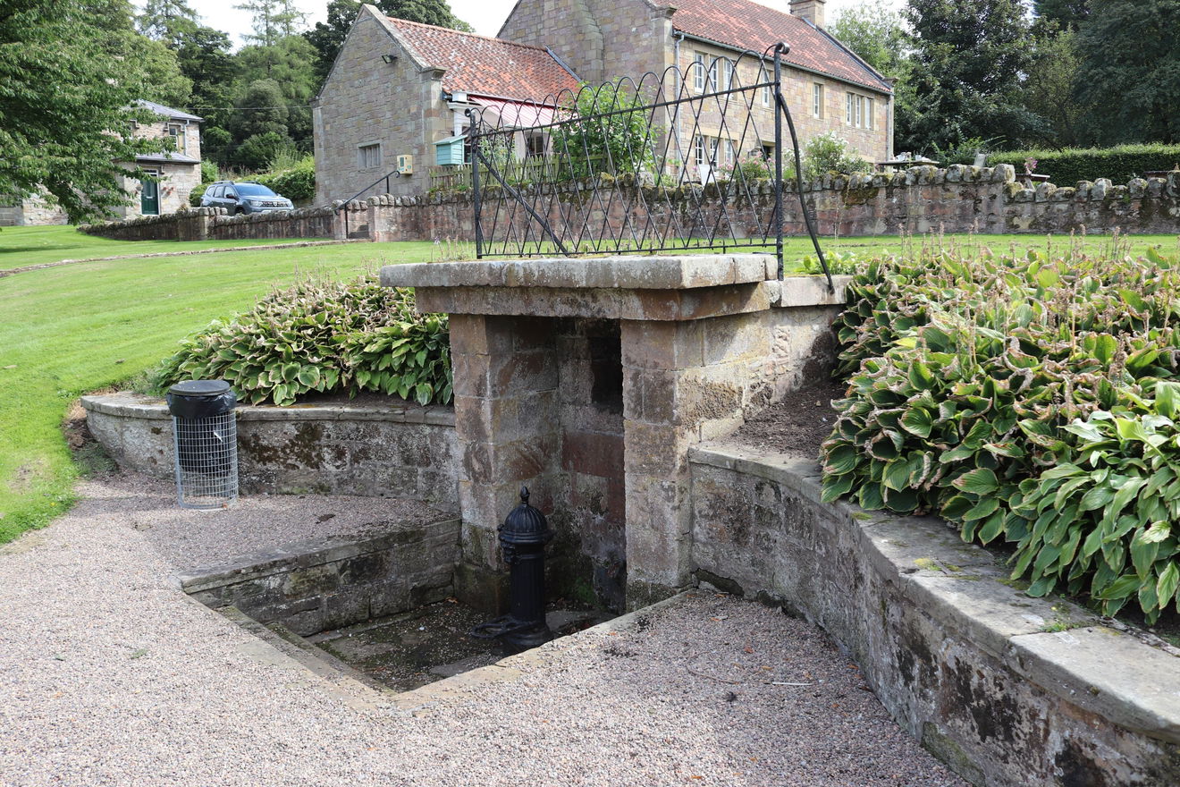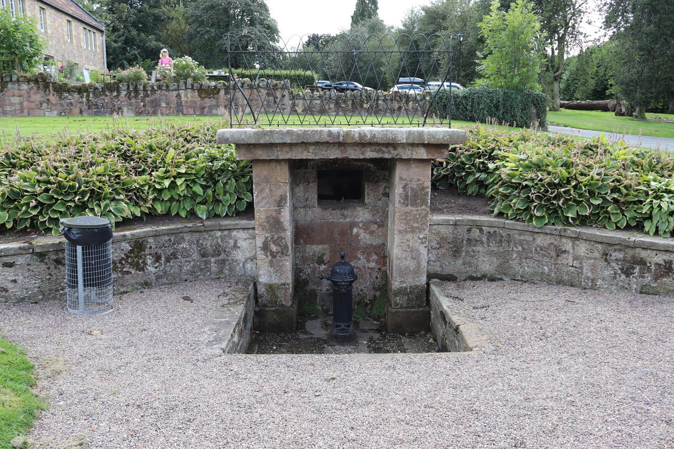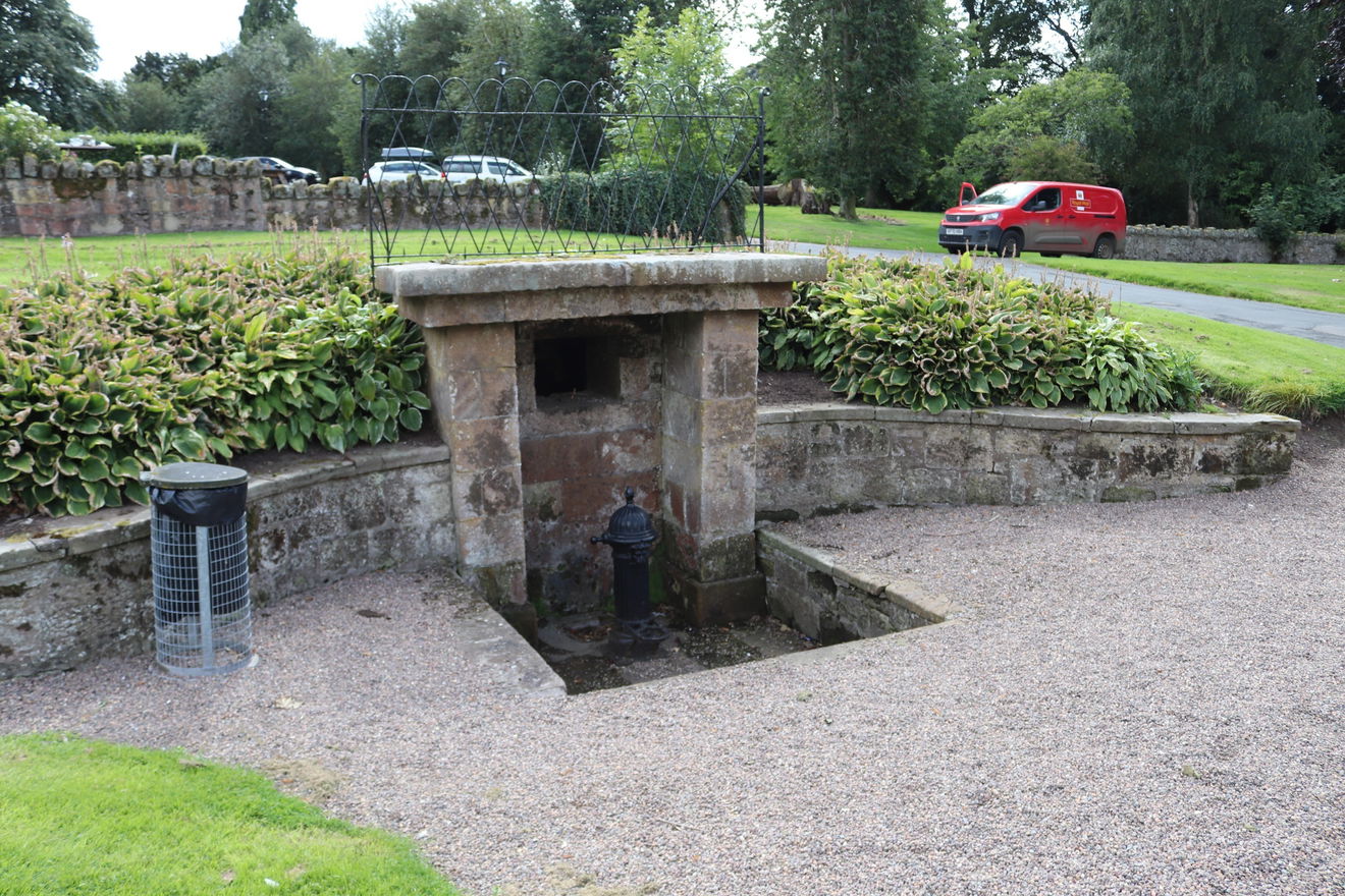 Well East Lothian BordersA 16th century wellhead with conical roof, and 14th century finial borrowed from the Old Parish Church.