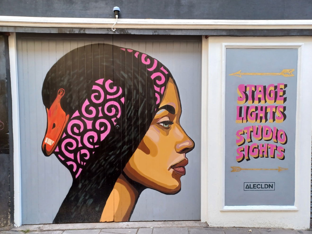On Pink Lane Alec Saunders (ALECLDN) has created the “Swansong” mural. This points the way to The Black Swan arts venue, “Studio Sights”, and the theatre and music venues of NX and The Tyne Theatre, “Stage Lights”.