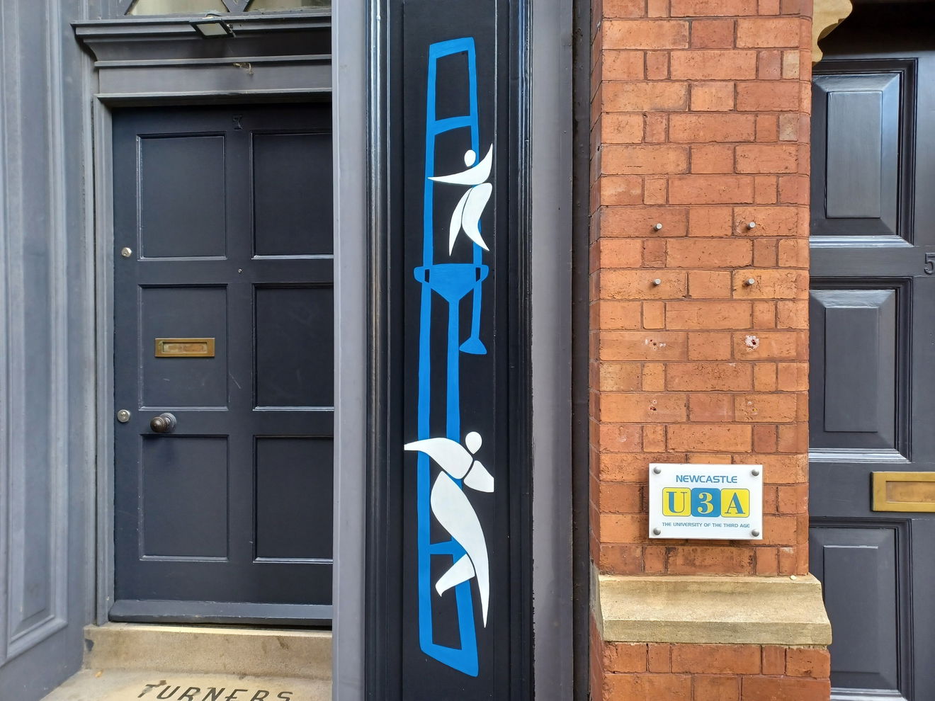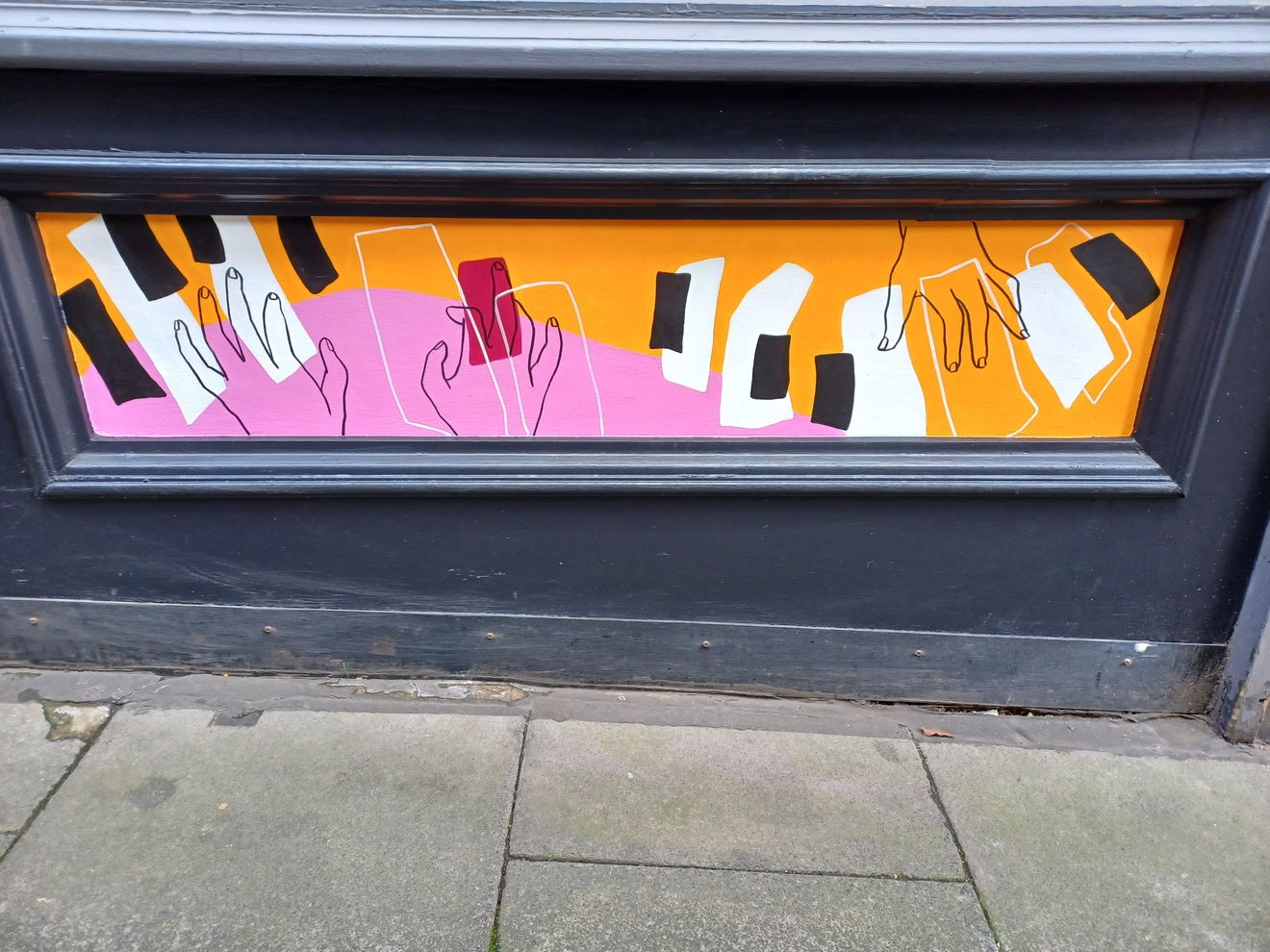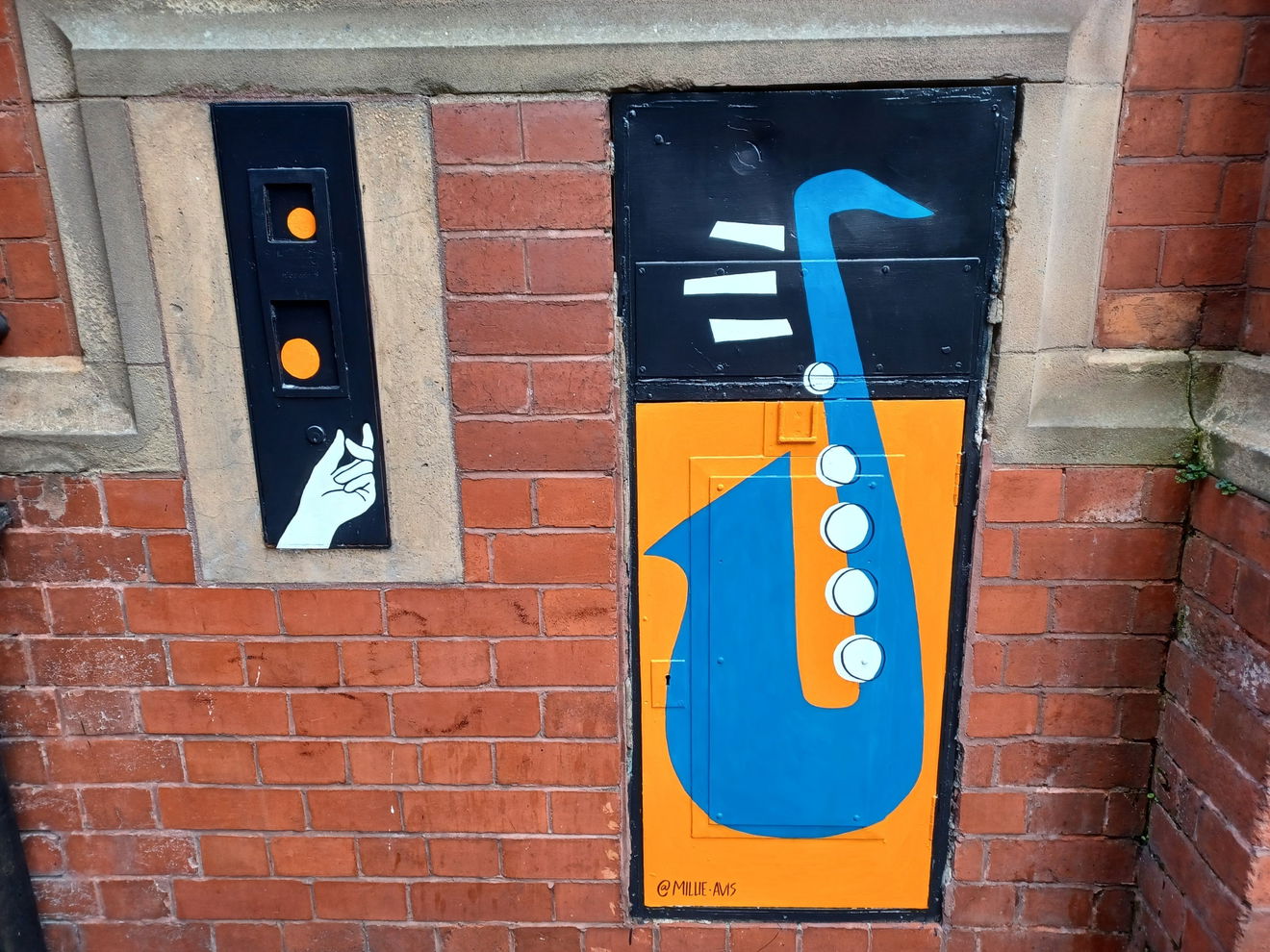 This is supported on Pink Lane by “Away with the Everyday” a work by Millie Avis. This is a series of smaller murals of piano keys, trombone and a saxophone, linking with the famous Jazz Café that formerly sat on the corner of Pink Lane and Forth Lane.