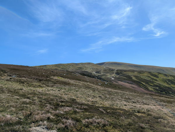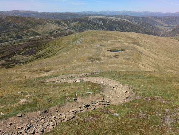 The path eventually levels for a short period providing great view back over The Cairnwell and showing the path ahead of you.