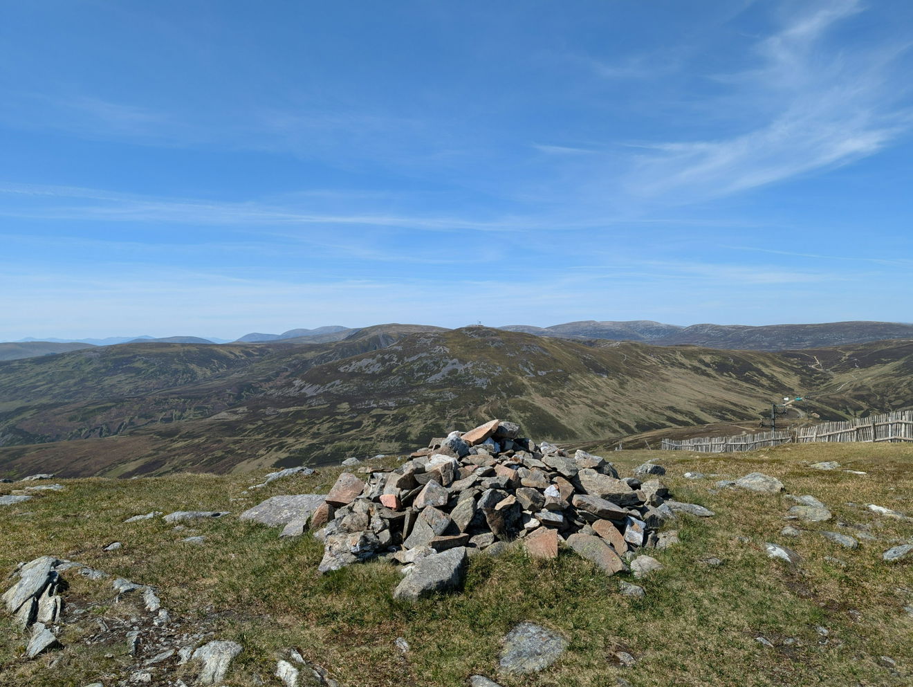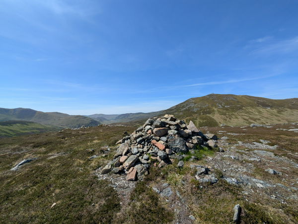 You will soon reach the pile of stones that marks the Munro Top Meall Odhar at 922m.