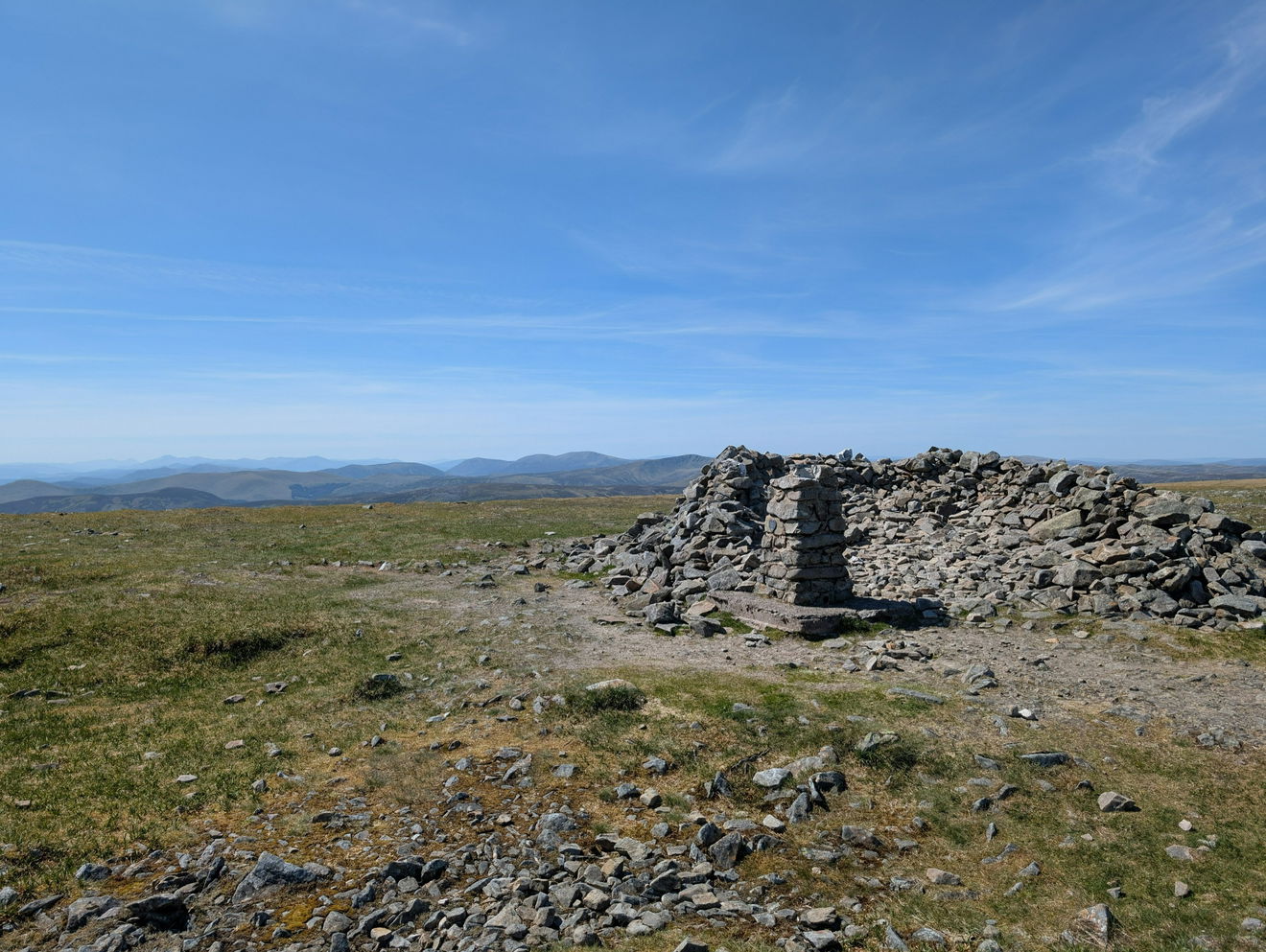 This is the Glas Moal trig point (1068m) near the Glenshee Ski Centre in the Cairngorms.