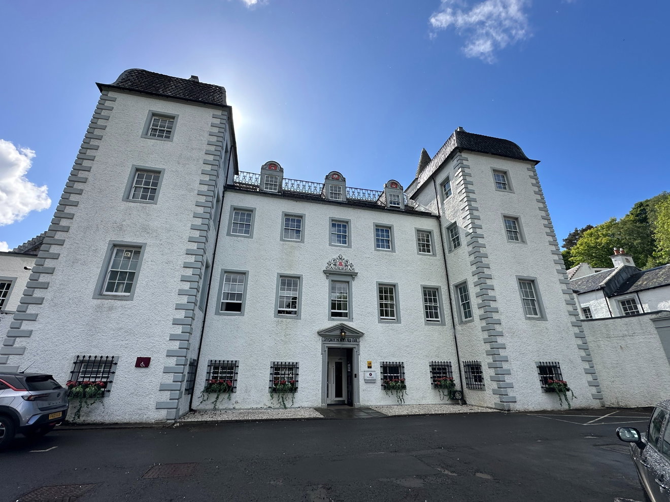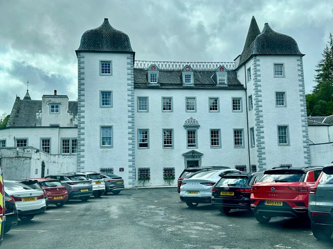 The castle, originally known as Darnhall, has seen many changes over the centuries. In the early 1700s, it was given a grand glow-up and fashioned into the French Jacobean façade that we see here today. We loved the ogee bell cast roofs, the fishtail slates and the clean white walls.