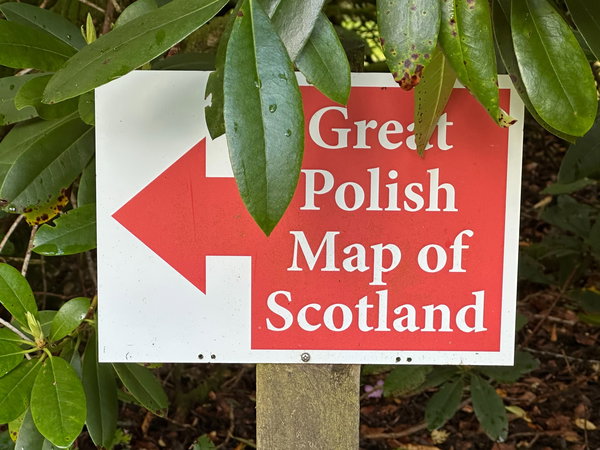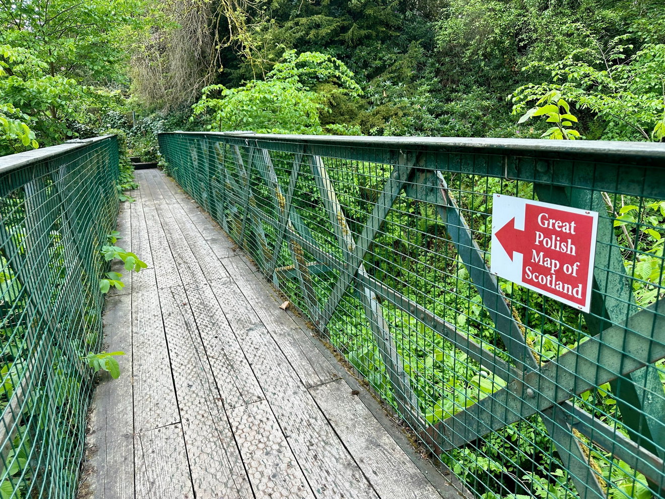 Crossing a little suspension bridge that wibbled under the weight of two hurrying humans, we scurried away, following the signs that confidently told us we were heading to The Great Polish Map of Scotland.