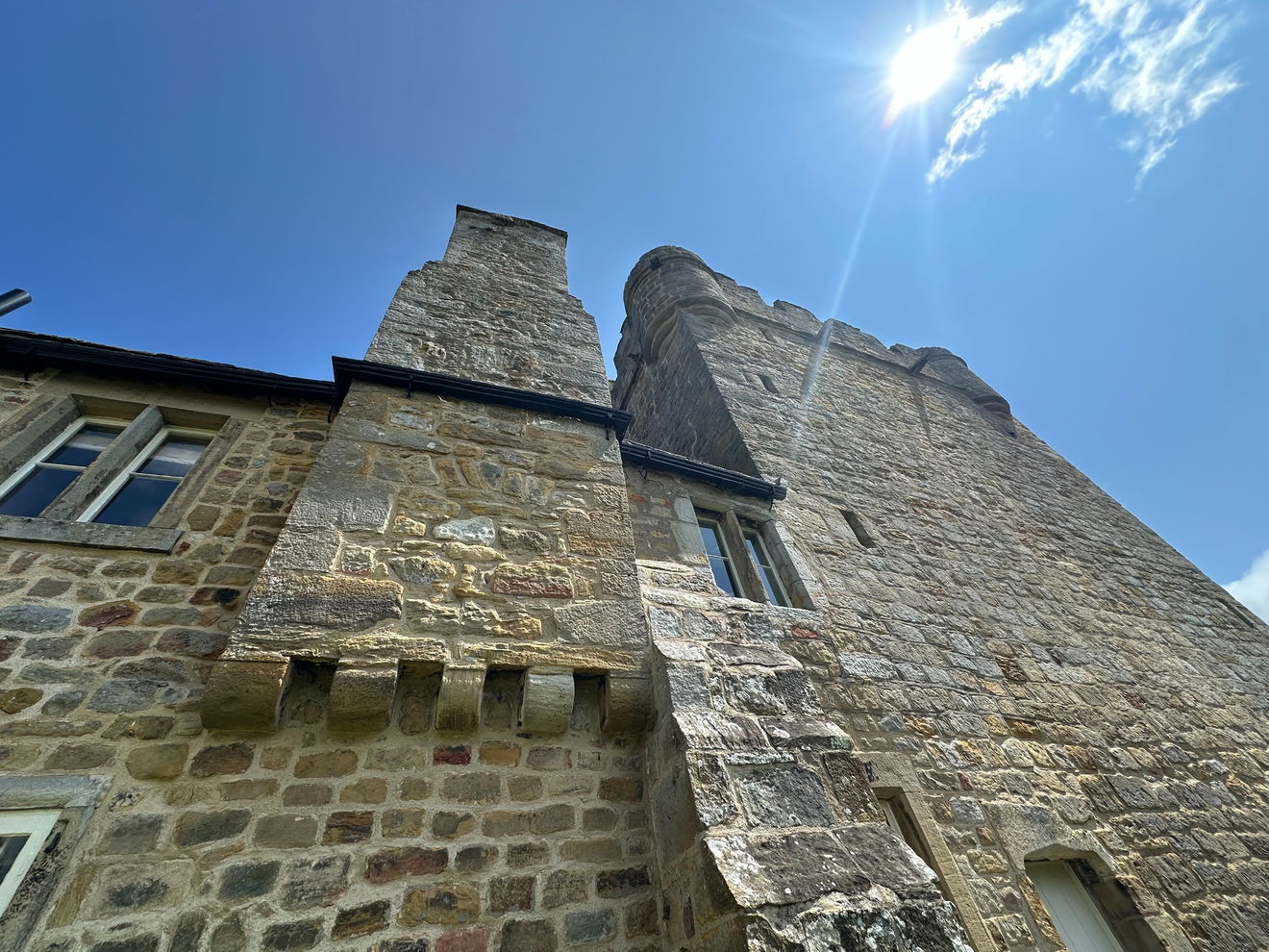 A Jacobean Manor House was added in the 15th century but was later dismantled, and the current manor house was added in 1695 by John Douglas, giving the castle an incongruous glued-on appearance, though it was the pele tower that came first.