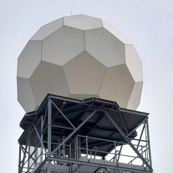 How does it work? I'm glad you asked. It uses microwaves and compares measurements, (There is more on the Met Office website for real enthusiasts). For those that like a bit of geometry the 'golf ball' shape is called a truncated icosahedron. Remember that for your next pub quiz!