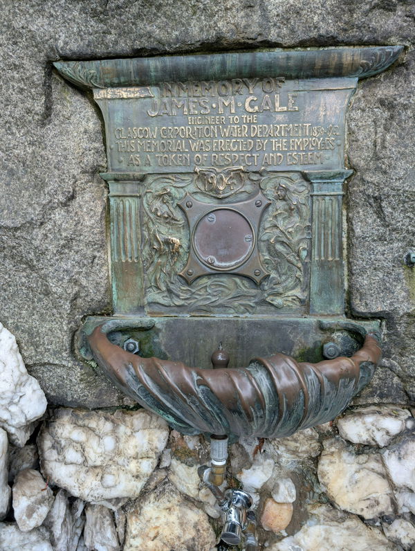 A water fountain celebrating the achievements of the engineer James M Gale, who brought a supply fresh water to Glasgow.