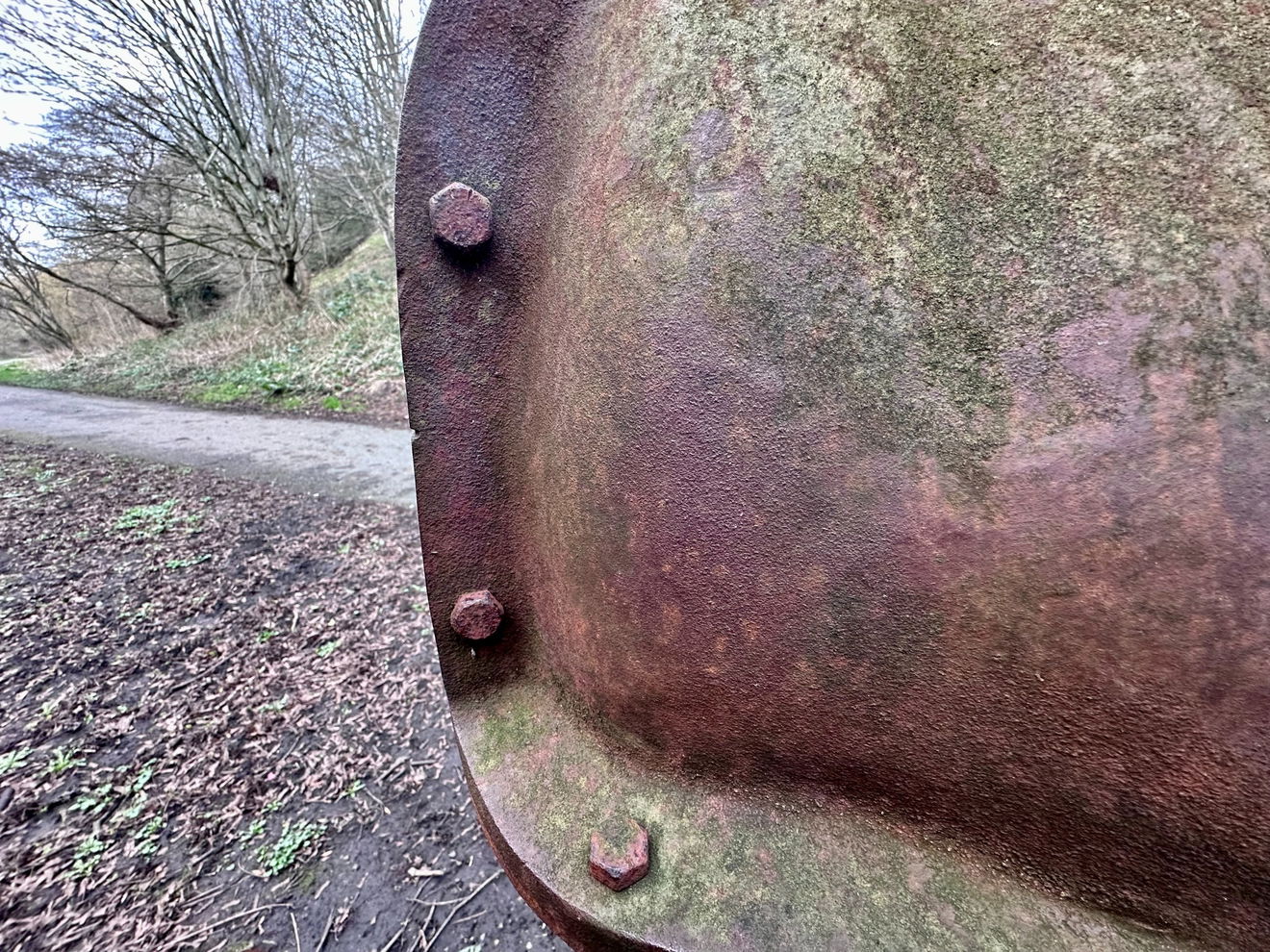 Look at these rivets holding together the Easter egg like shells of Cast Weathering Steel. This functionality is essential to Burke's work and is entirely intentional.