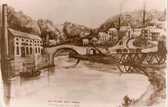 On the other side of the river stood the locomotive works, which from 1837 to 1852 built Bedlington Locos. You can get a feel for the hustle and bustle of this busy industrial site from this sketch of 1840, also from Bedlington Local History Society. You can see the small coal waggons which soon progressed to locos pulling trains all over the world, and impressively, the first train to leave London's Kings Cross was hauled by a Bedlington Loco.