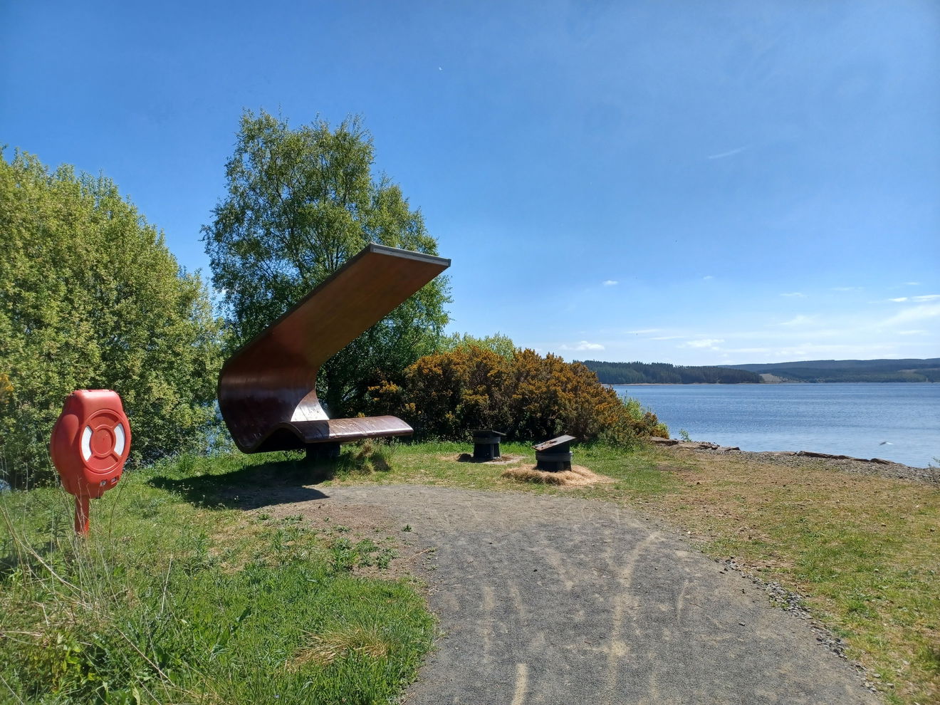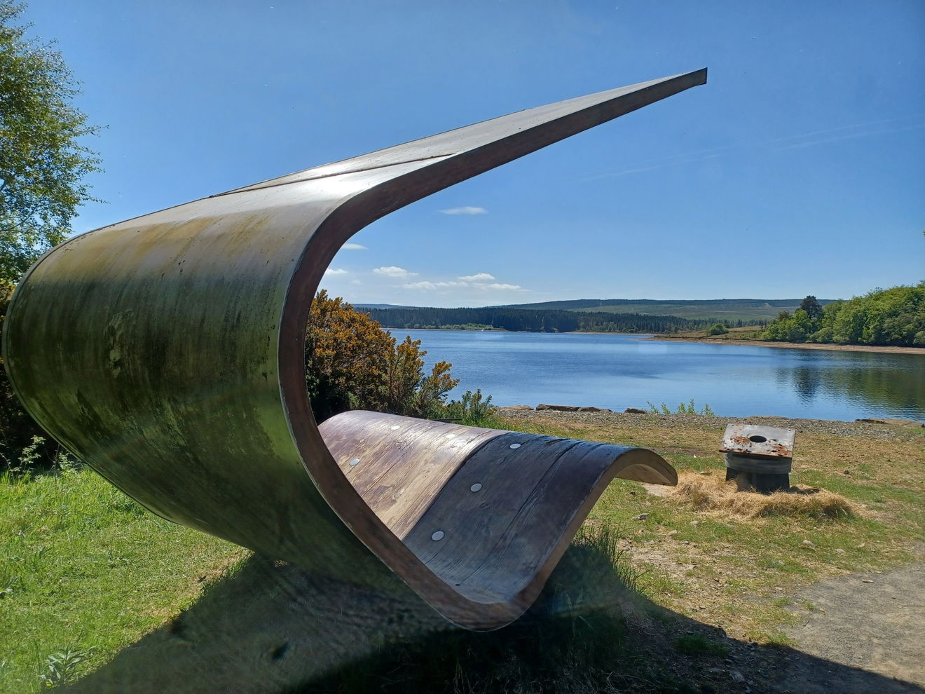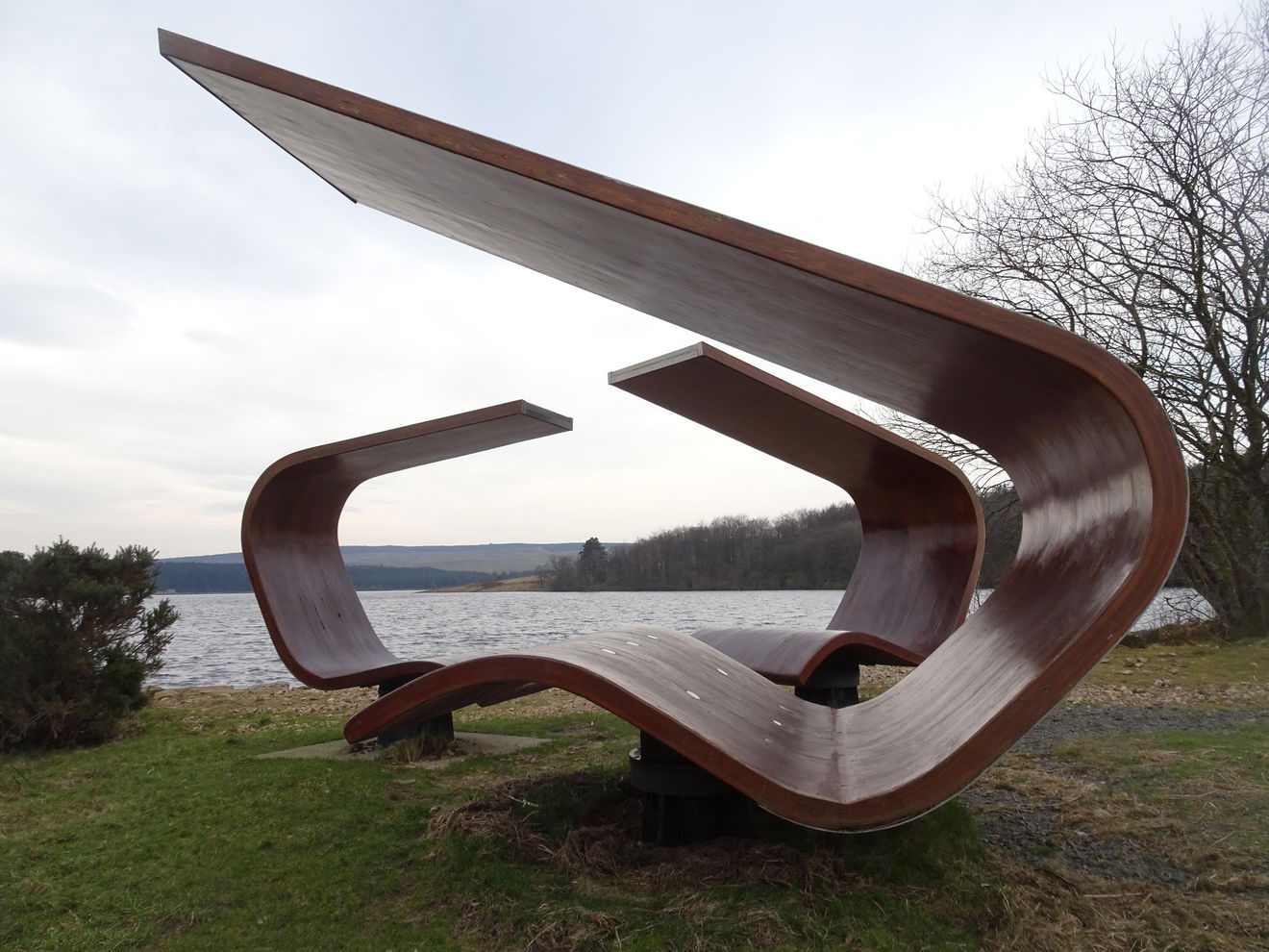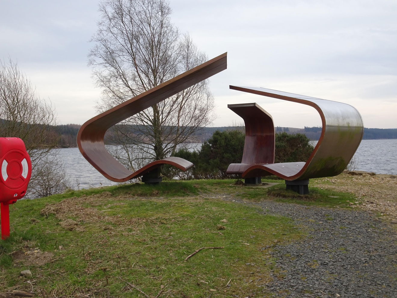 The Janus Chairs are a shelter / art installation that form part of the Kielder Art Trail, that can be found on the north shore of the reservoir. They were designed by Newcastle based Ryder Architects and were unveiled in 2009. Originally there were three chairs which rotated but there is currently only one left as the others are off for repair.
