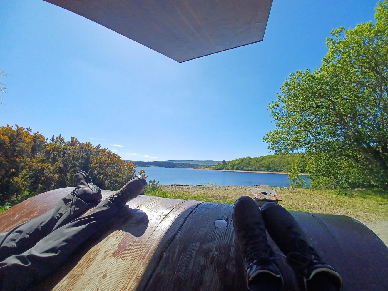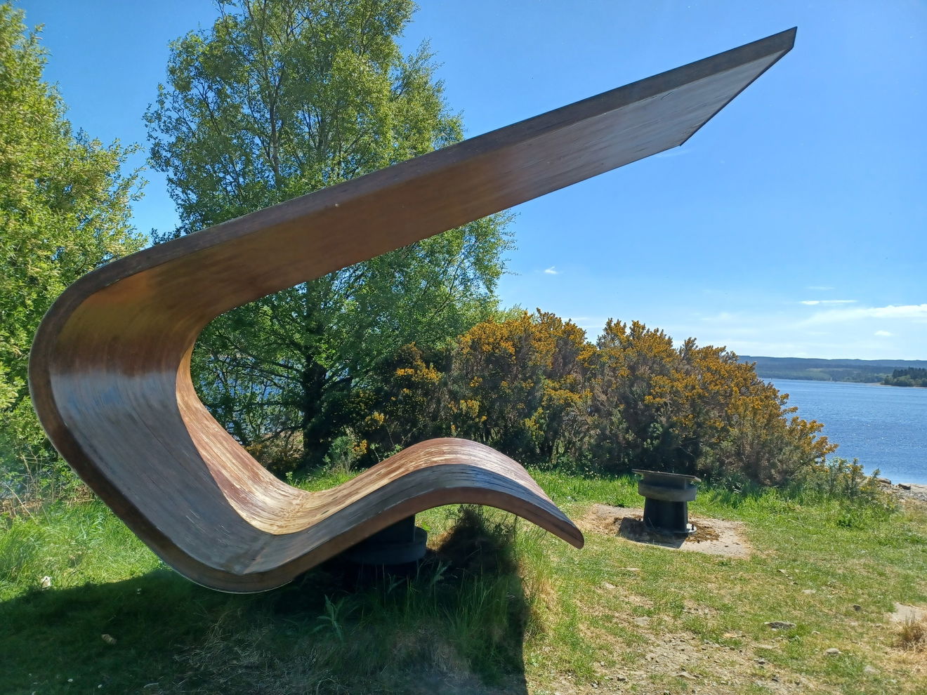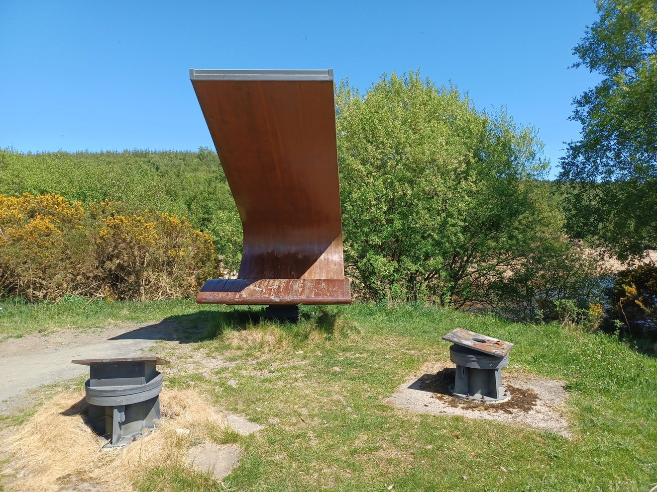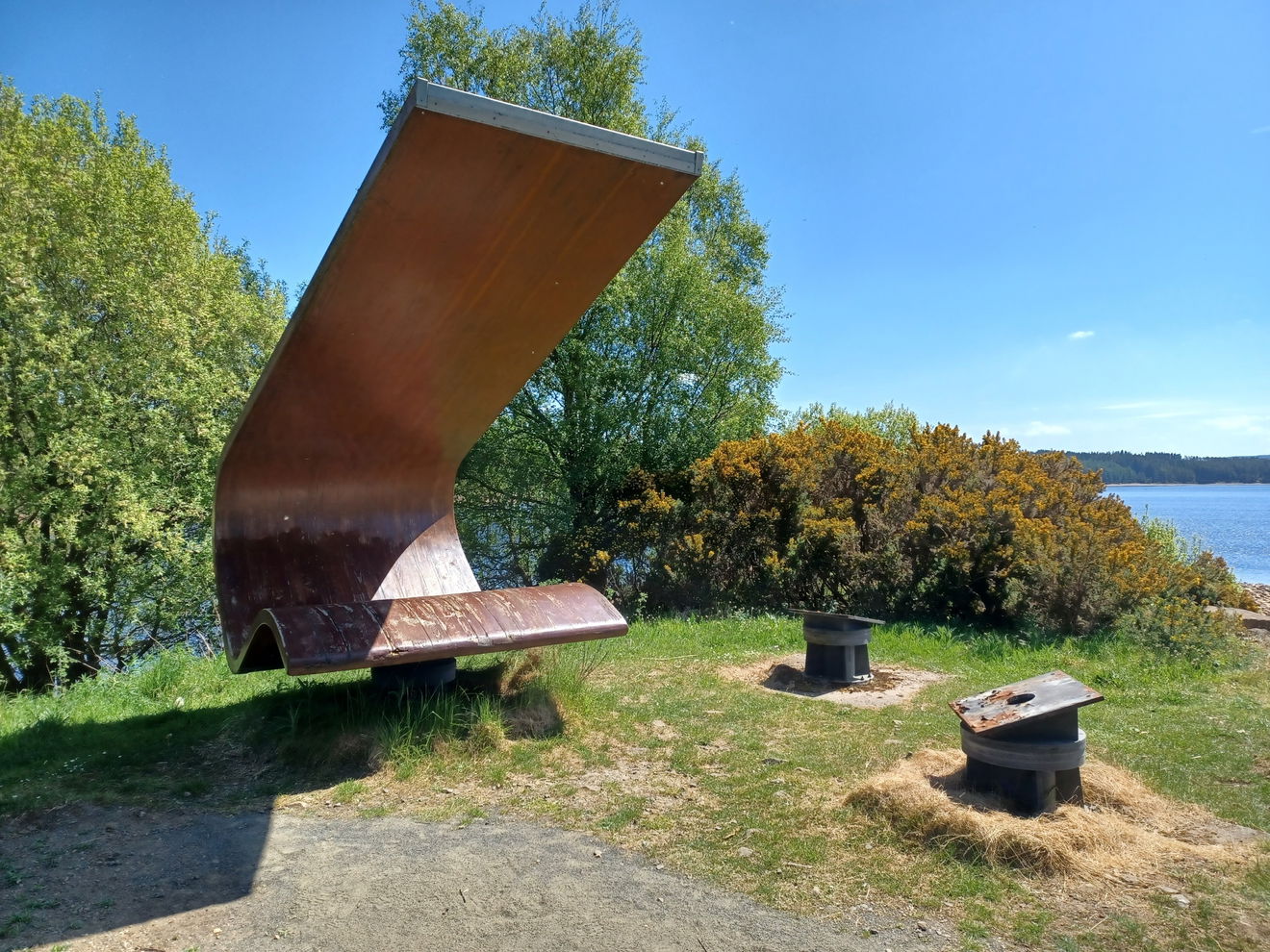 The Janus Chairs are a shelter / art installation that form part of the Kielder Art Trail, that can be found on the north shore of the reservoir. They were designed by Newcastle based Ryder Architects and were unveiled in 2009. Originally there were three chairs which rotated but there is currently only one left as the others are off for repair.