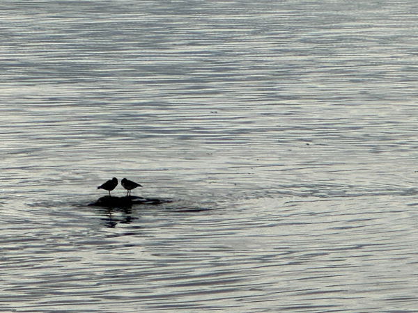 With a cinerama of the Firth of Forth gently propping up the piece, on a clear day, you can see across the sea to Arthur's Seat, balancing above the Royal Mile in Edinburgh. Closer to the shore, we watched sleeping Sandpipers like little sentinels on big stones in the sea.