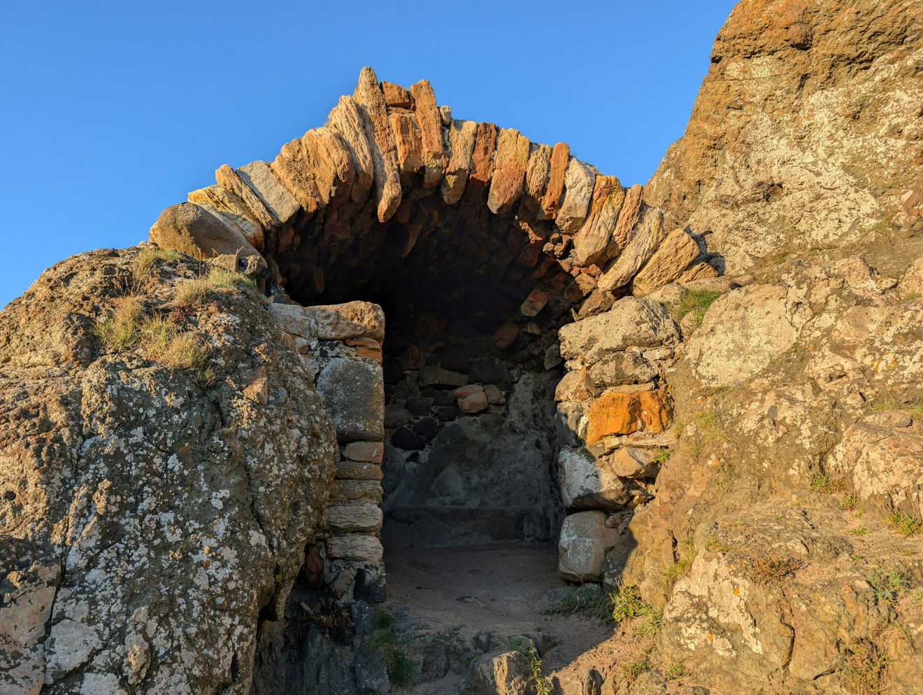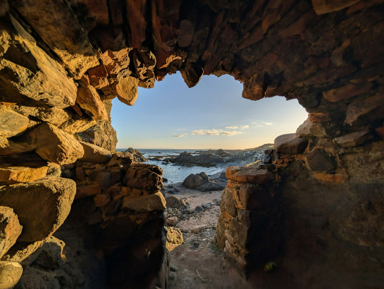 Once you have investigated the tower and enjoyed the splendid views, it's time to see where the fine lady changed for her swim. If you make your way down to the small beach to the south of the tower, you will find her cave changing room.