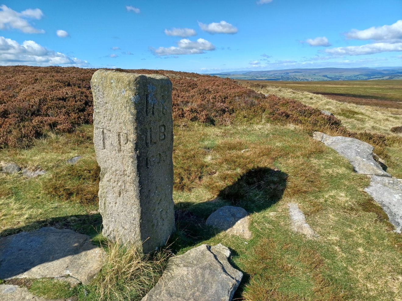 The Lanshaw Lad would have been one of many stones when first erected though many of these have now disappeared the boundary is still marked by a series of yellow timber posts. Not as interesting to look at but they are probably easier to spot in the heather. There is apparently a Geocache nearby the Lanshaw Lad you can try and find too.