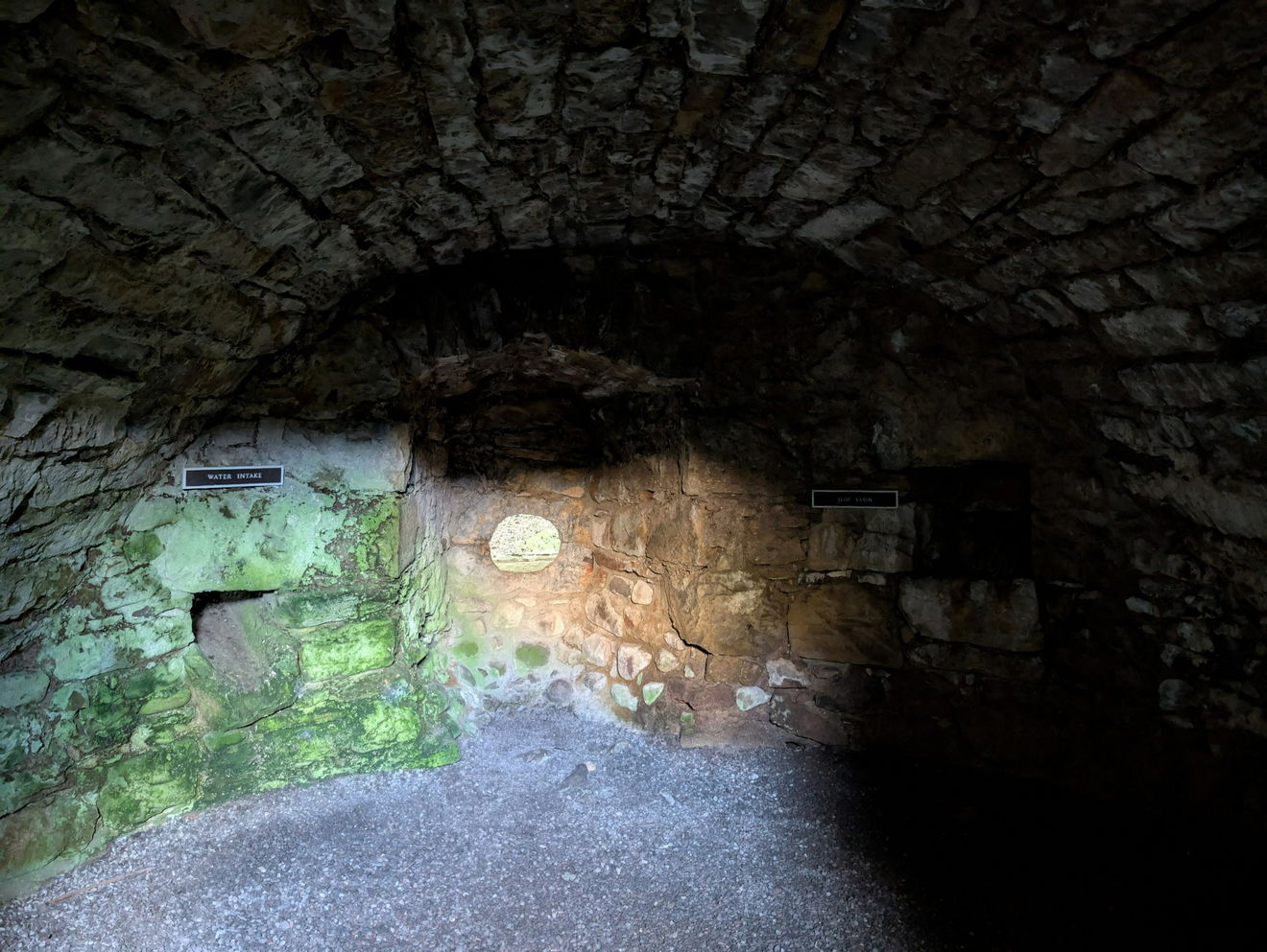 It has a vaulted ceiling and contains channels to allow water to be collected from the loch, and waste to be disposed of through a slop drain.