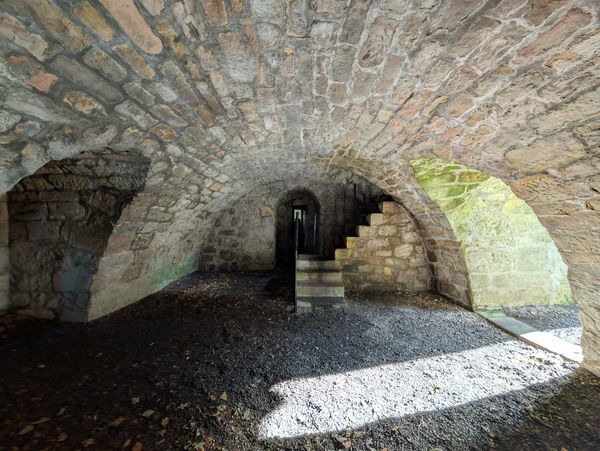 The ground floor of the tower house contains a vaulted cellar which was used for storage.