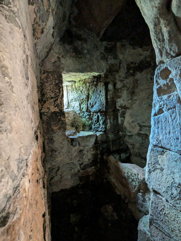 The tower has a cellar which is reached via some steps and a small doorway, again not a problem for a shorty like me. The cellar was used primarily for collecting and storing water.