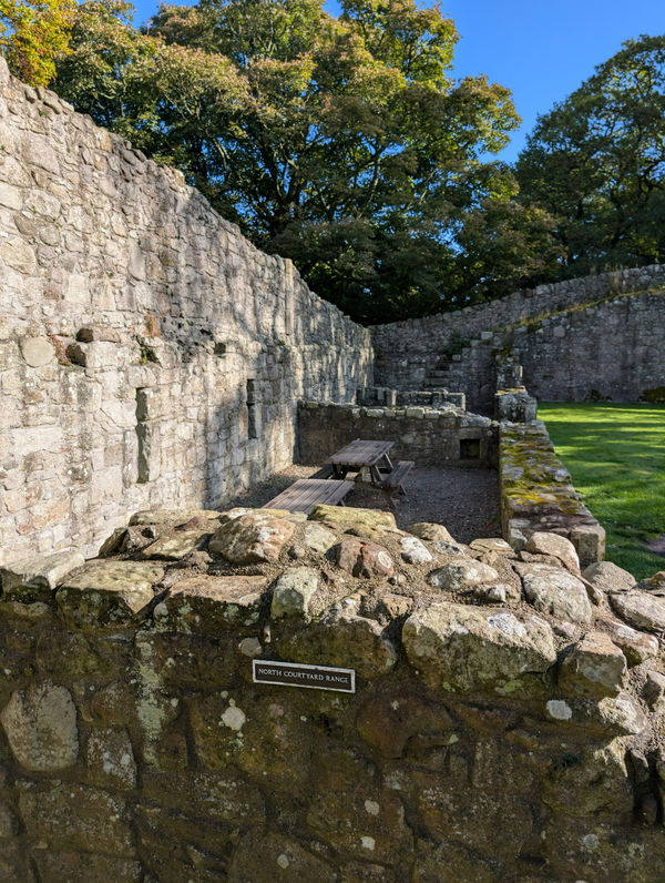 As you pass through the gate, you will find the north range to the left. Part of these ruinous buildings would have been the porter's lodge.