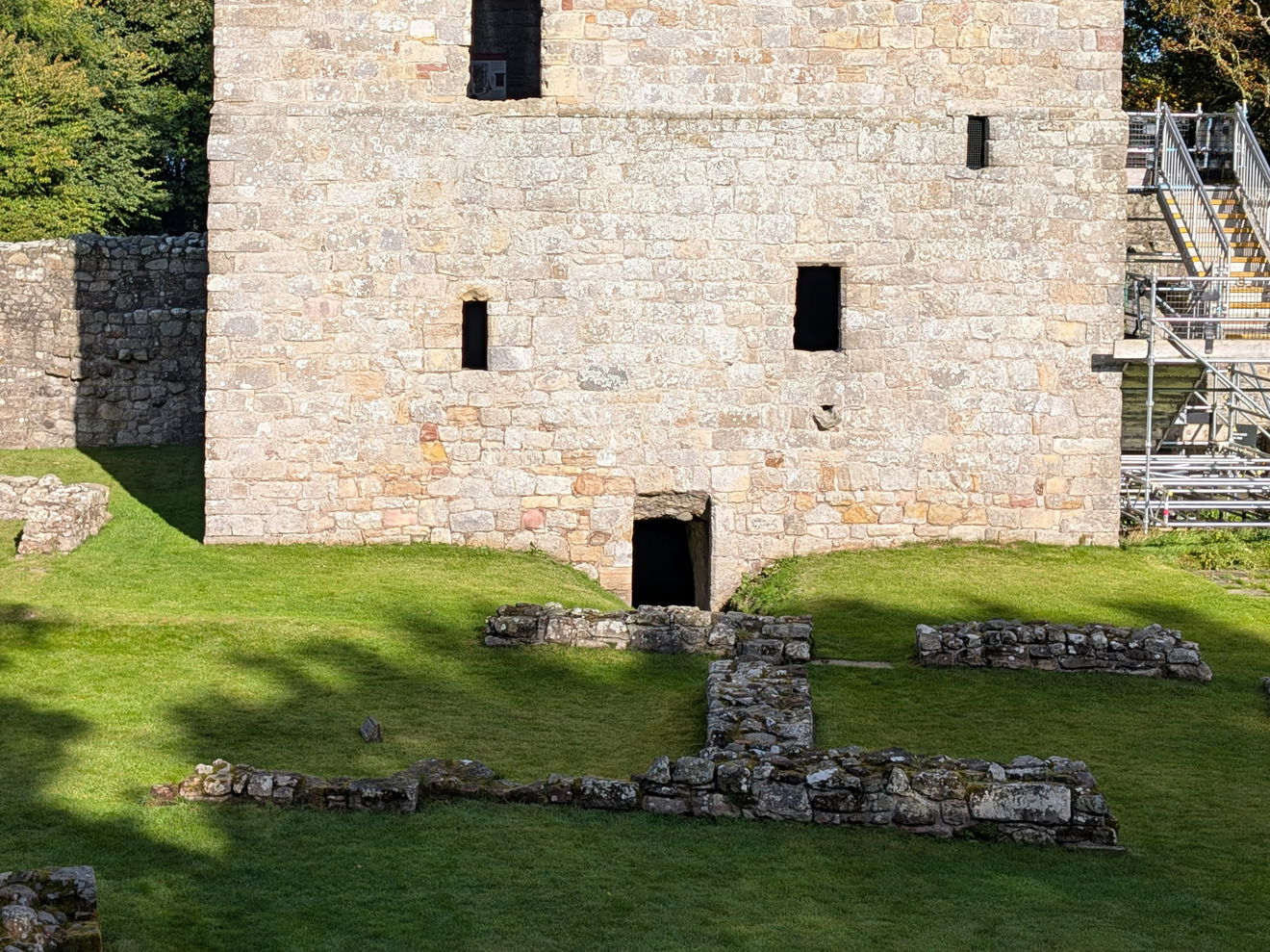 Next up is the second floor. Access to this part of the building is via a scaffold stairway which takes you to what was the main entrance to the tower house. The location of the entrance made it much easier to defend the resident laird and his family.