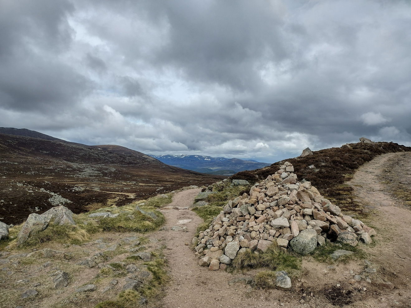 The track starts to get steeper and it climbs west. At the cairn, take the path to the left. Continue on the path passing the Fox Cairn Well on the left.