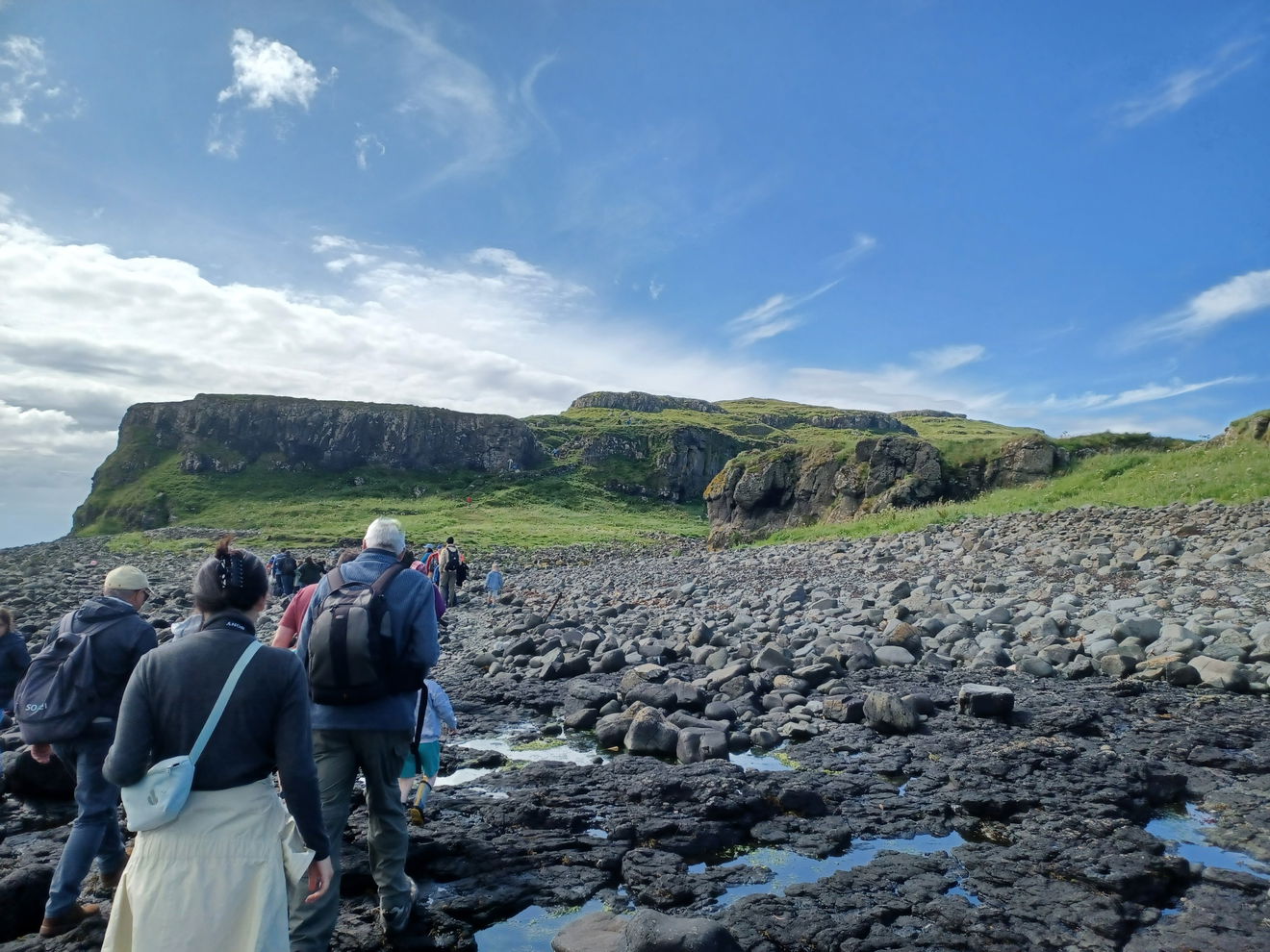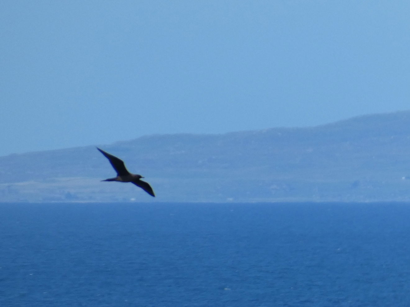 You arrive at Lunga via a rocky shore and have to pick your way across the rocks to get to the path up to the birds. While a tricky route to navigate it can be done by most, with care, indeed there were many older people, some with sticks, who managed to get across. There follows a steep scramble up a dirt path, between rocky outcrops, to a flat grassy plateau where you will find the bird everyone has come to see.