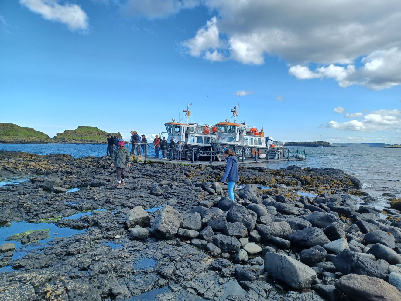 It is the geology of the island that makes it so attractive to seabirds as the ancient lava flows that formed it, created tiered basalt columns and sea stacks which provide multiple locations for these birds to nest. Given its location, you would be correct in thinking you can only access the island by boat, and we did just this travelling from our base in Oban, via the ferry to Mull and a bus trip to Tobermory, where the boat departs from.