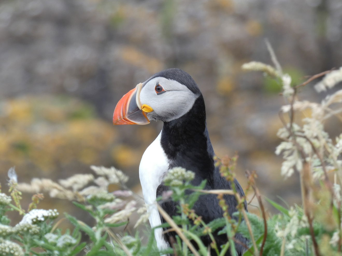 The Atlantic Puffin only comes ashore to breed, spending the rest of the year out at sea, and it is the star attraction wherever it chooses to set up nest. The nesting areas are roped off to give the birds some space, but you can still get very close to them. They are so used to people that they seem unconcerned by your presence, our guide told us that they actually like when people come to visit as they keep the Skuas (which like to eat the Pufflings) away, making it safer for them to come out their burrows.