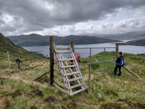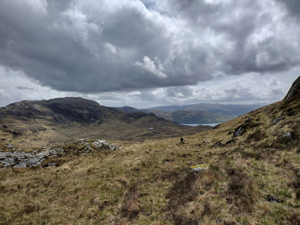 If you are only bagging the trig point, then return by the same route. If you are feeling energetic and don't want to miss out on the fantastic Ben Laga, then head back down to the path before heading up the next hill.