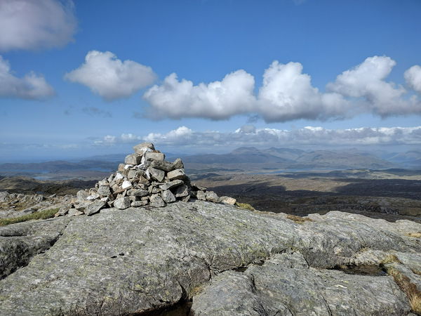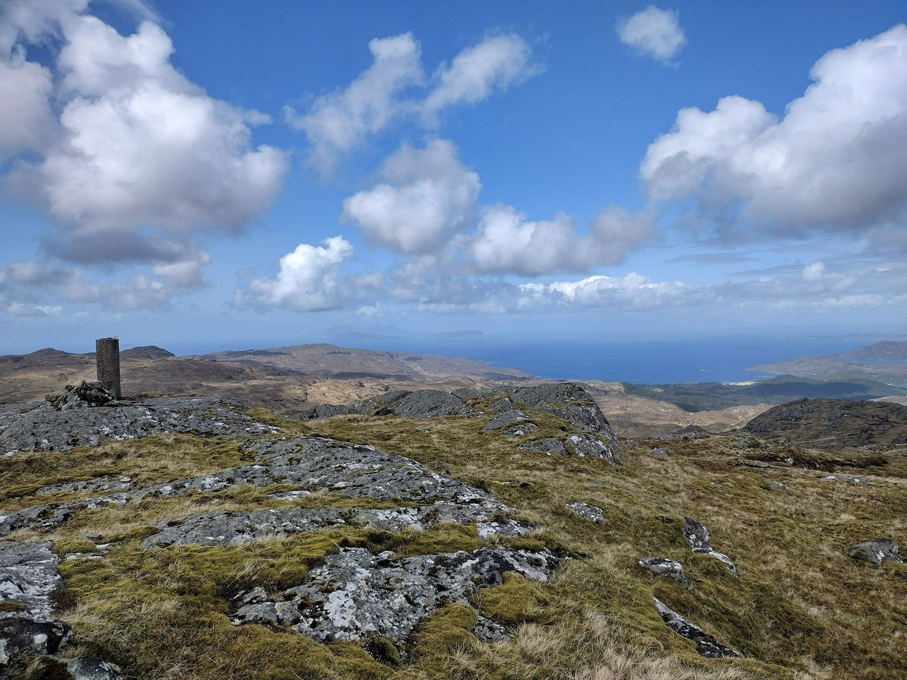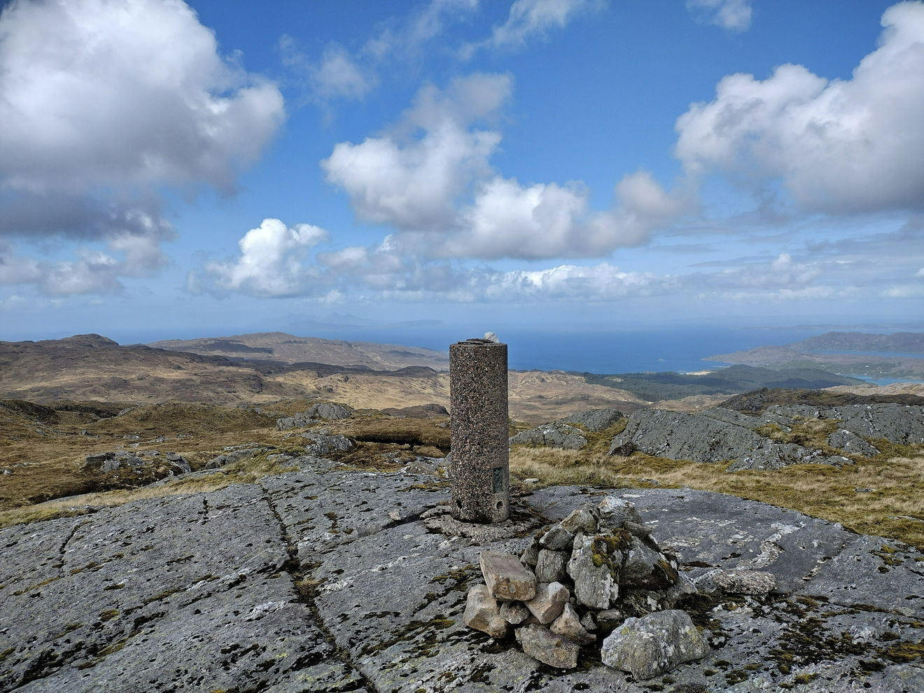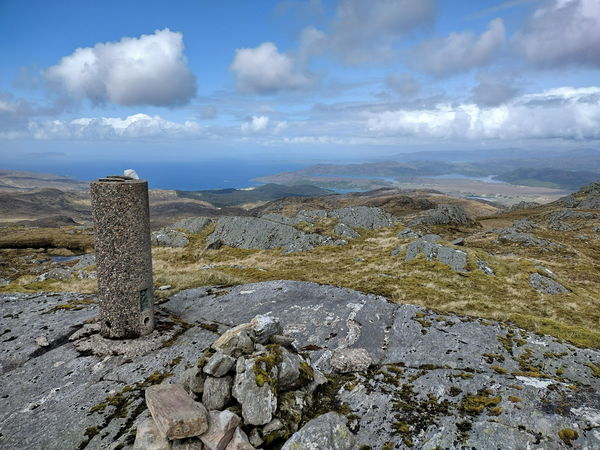 This is the Meall nan Each trig point sitting on a rocky outcrop (490m) in Ardnamurchan.