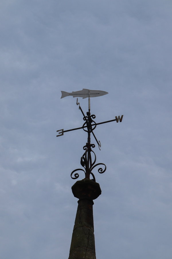 Norham village cross is thought to date, in part, from the Medieval period. The base is the oldest part while the columned shaft and pyramidal top dates from 1870. What makes the dating difficult for the layman is that the newer sections have weathered more than the older sections! In 1927 a weather vane was gifted by Mr Thomas Thorpe, to be installed on the top, and depicts a salmon which was a vital part of the local economy.