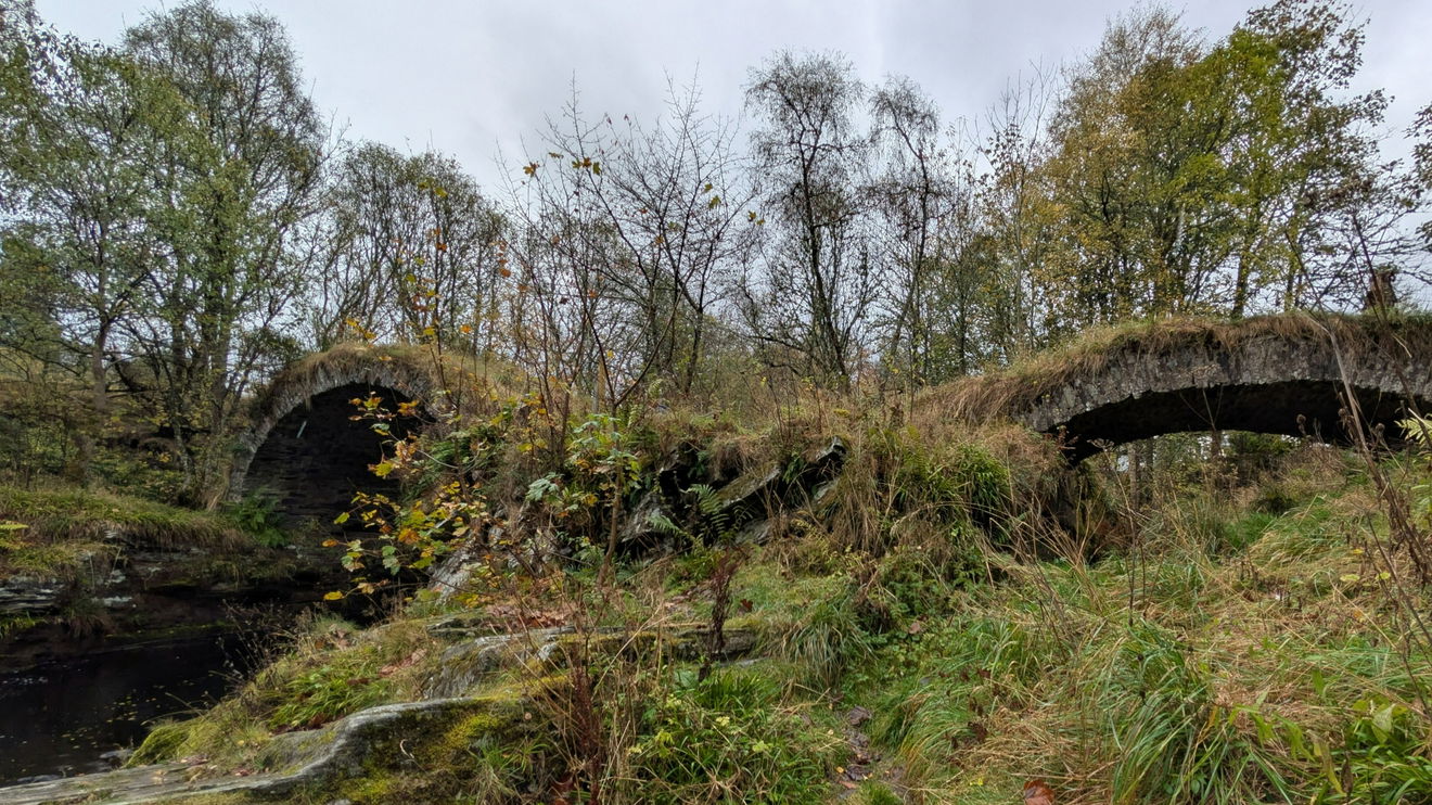 Possibly the oldest packhorse bridge in Scotland, which lost its third arch during the Muckle Spate of 1829.