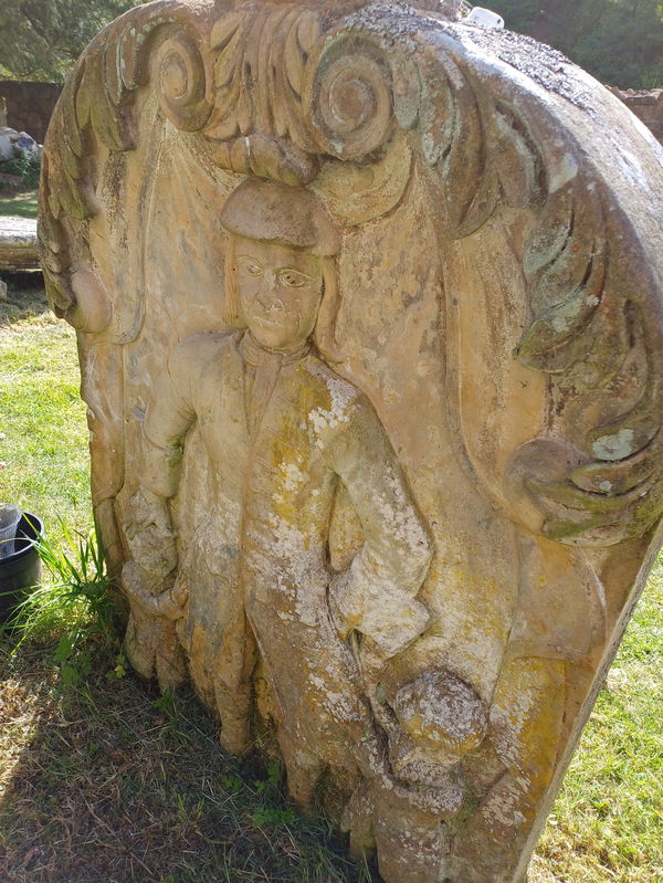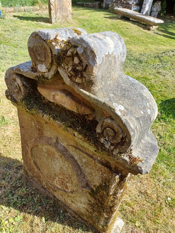 Temple's in particular are noted for examples where the back carvings depict aspects of the deceased's lives. Perhaps the most notable example is that of John Craig's, a farmer who died in 1742, shown in traditional clothing and accompanied by his two sons.