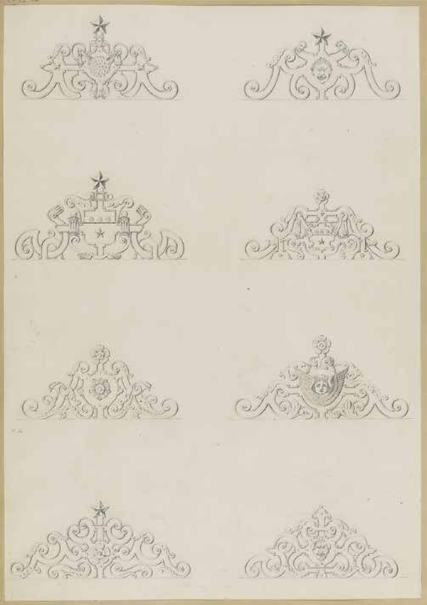 You can see his sketches for the ornamentation above the hospital windows below from the RIBA Drawings Collection. The decorative scrolls are similar to those on top of the orangery...like the fine chocolate lattice decorations on fancy French desserts.