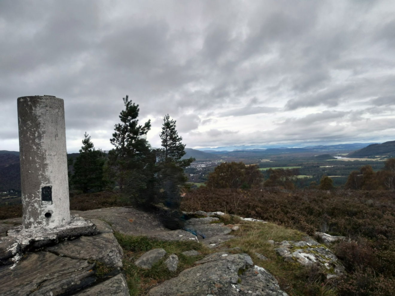 The Ord Ban trig point sits on a rocky outcrop (428m) near Aviemore.