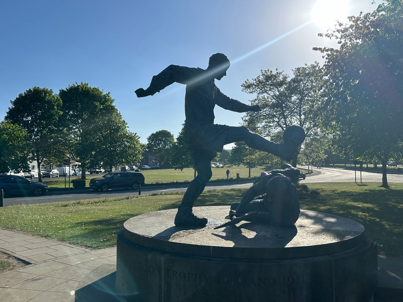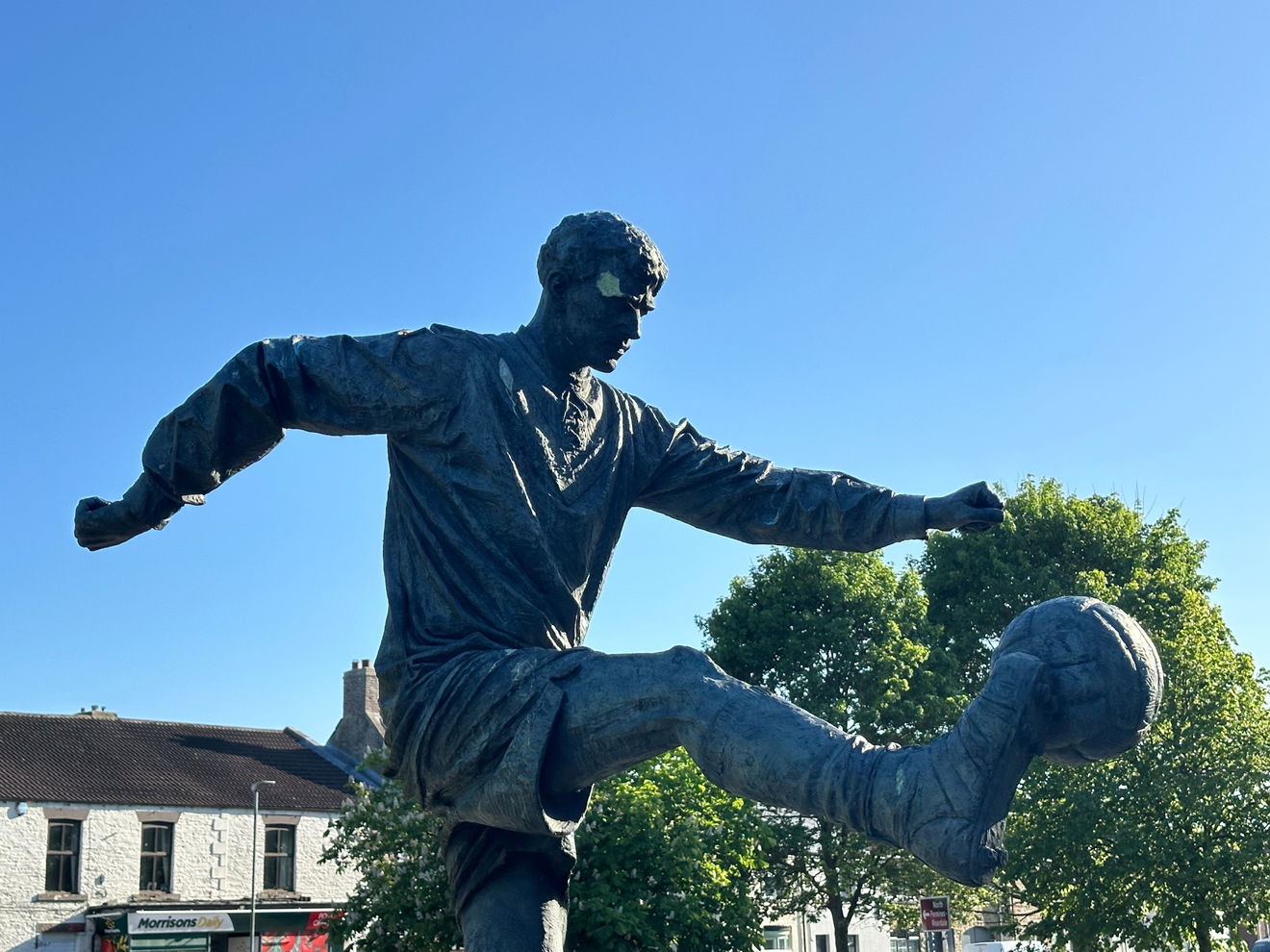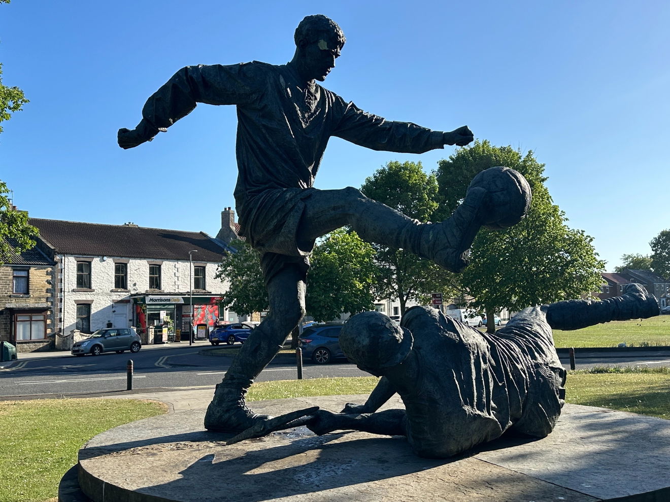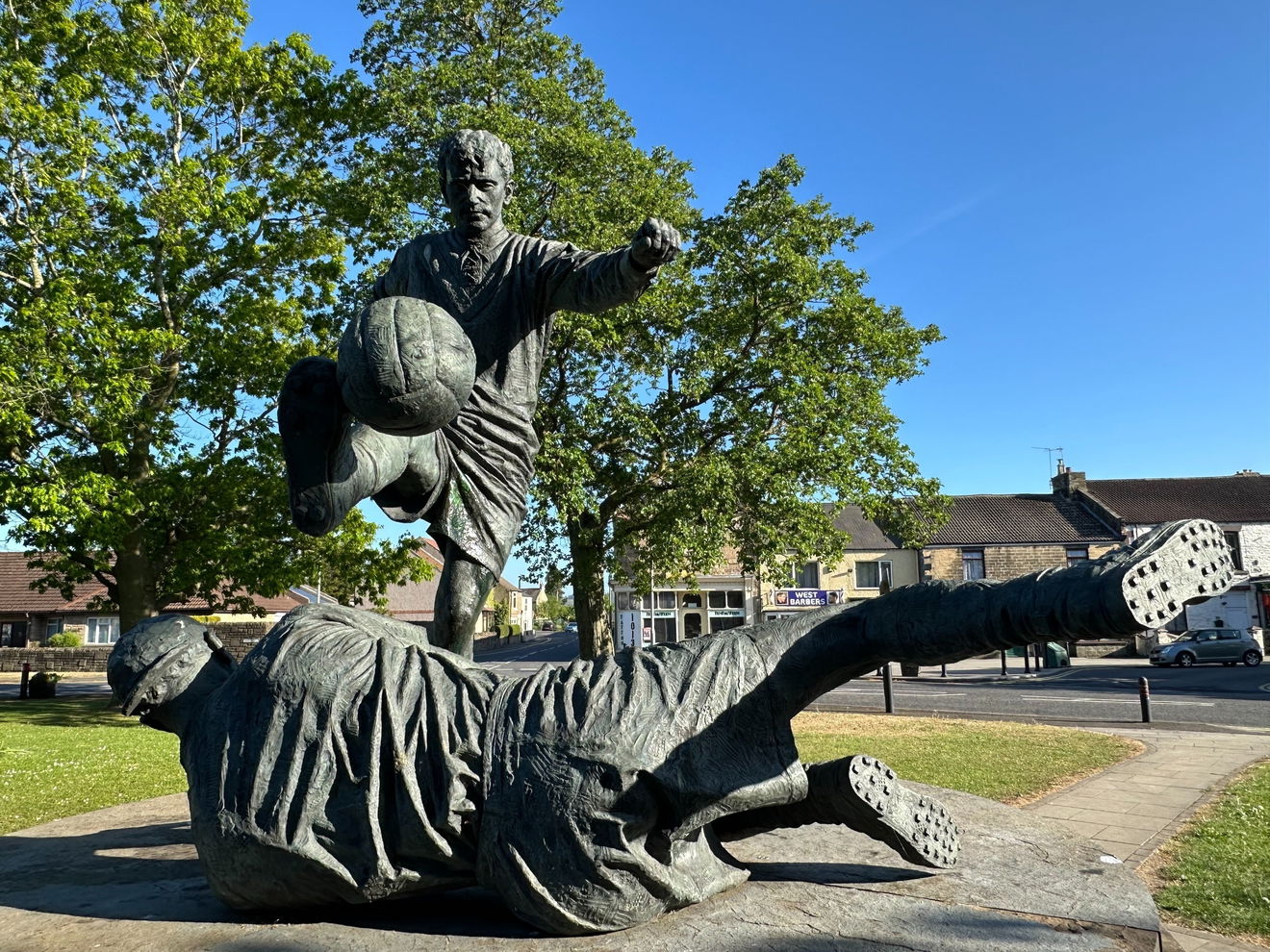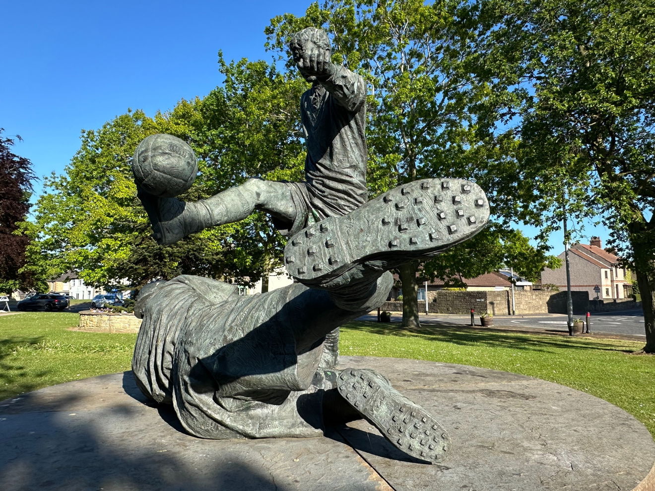 A sculpture by Nigel Boonham to commemorate the bold boys of West Auckland, a team made up of coal miners, who won the Sir Thomas Lipton Trophy competition in Turin in 1909.