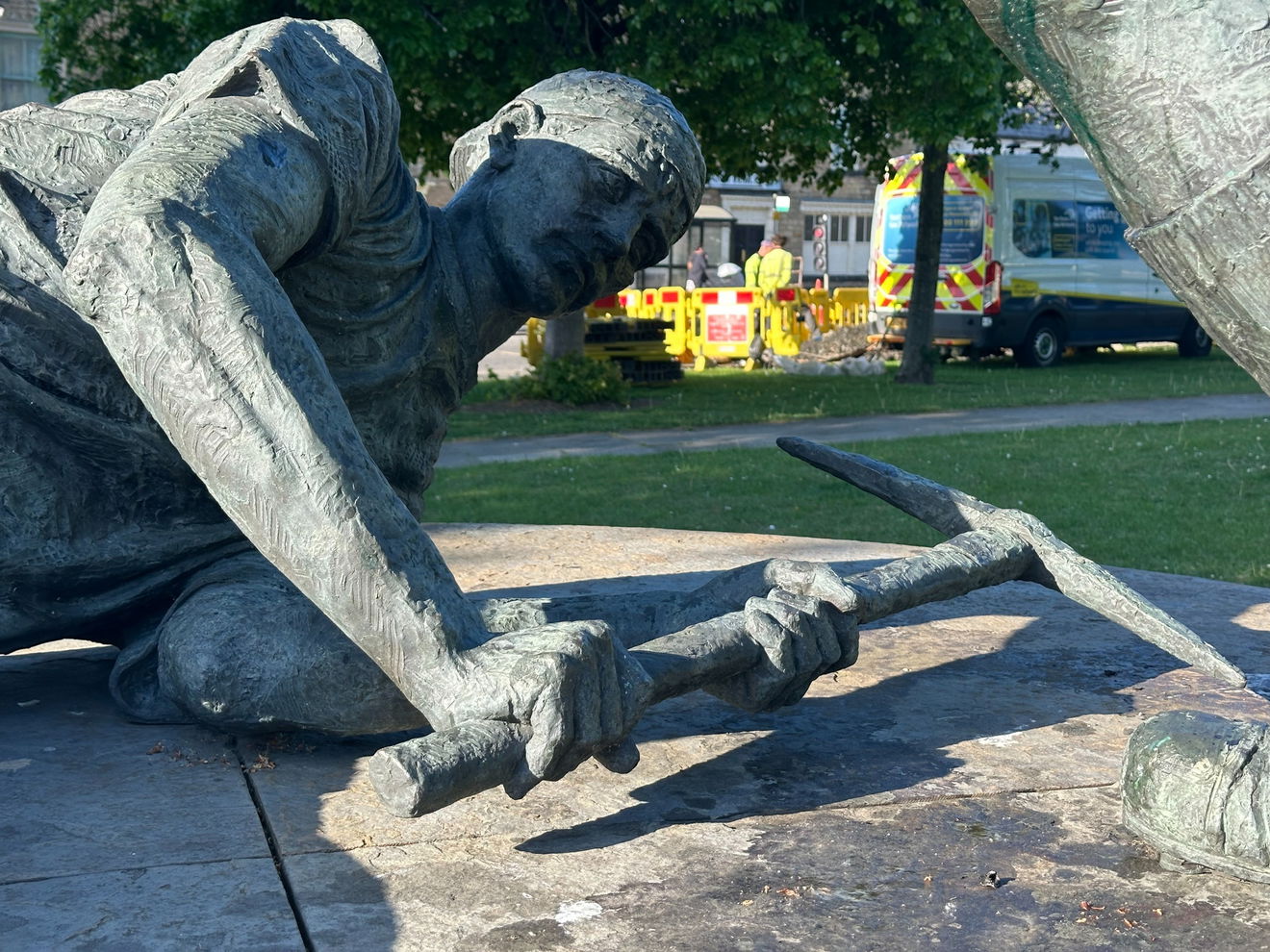 Sculptor Nigel Boonham admitted that neither mining nor football was his forte prior to this piece. “I wanted the statue to be a bit ambiguous, meaning different things as you looked at it from different places.”