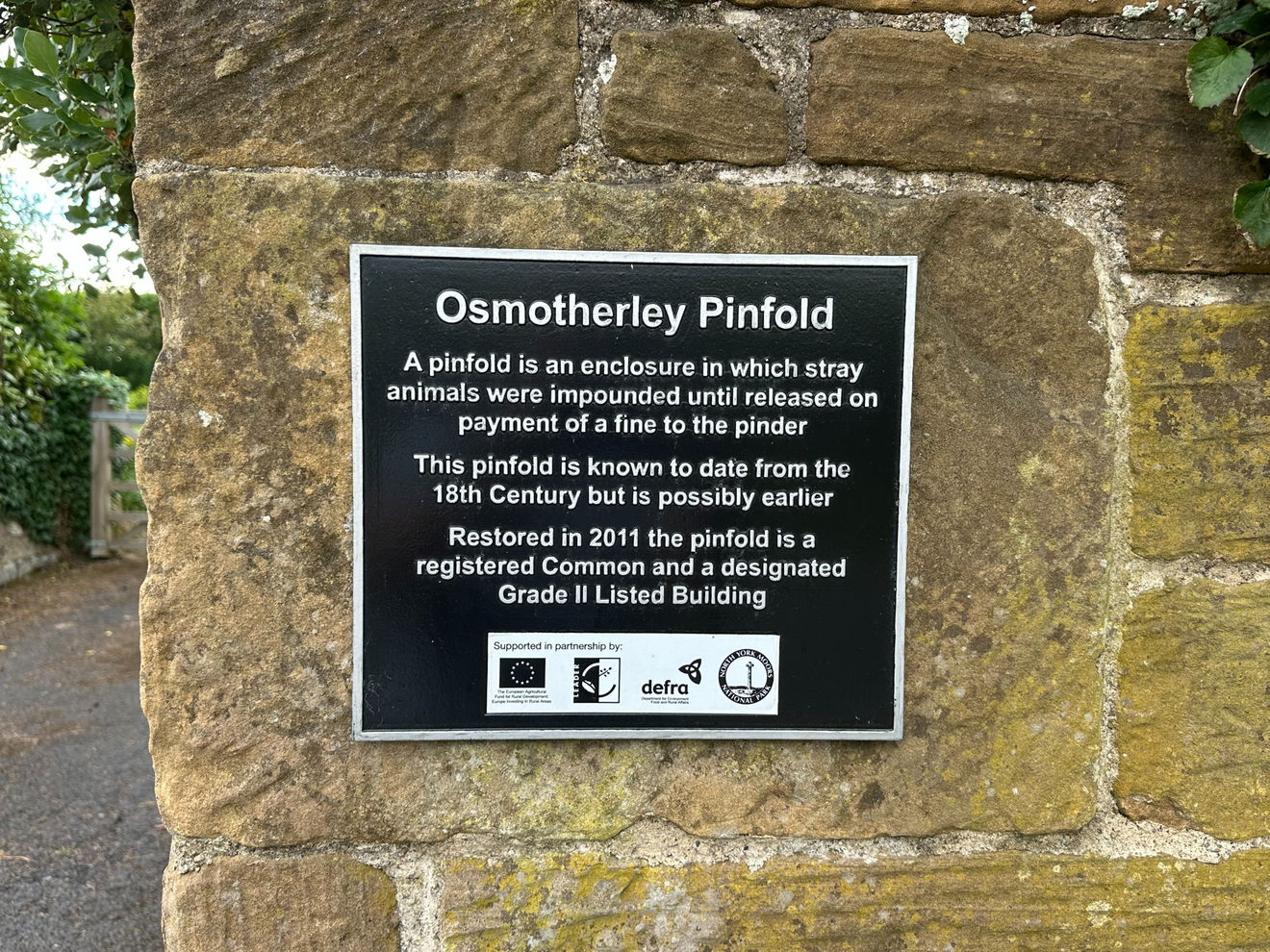 Heading out of Osmotherley to the north, my eye was drawn to a little heritage sign marking the location of the Village Pinfold.