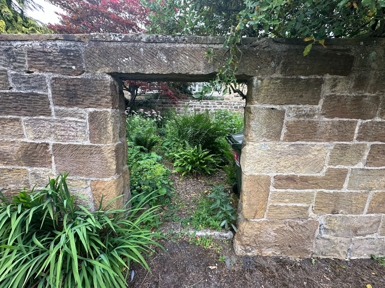 It almost looks like a small-scale walled garden, which in modern times, is what it appears to have become. Well that, and a store for wheelie bins!
