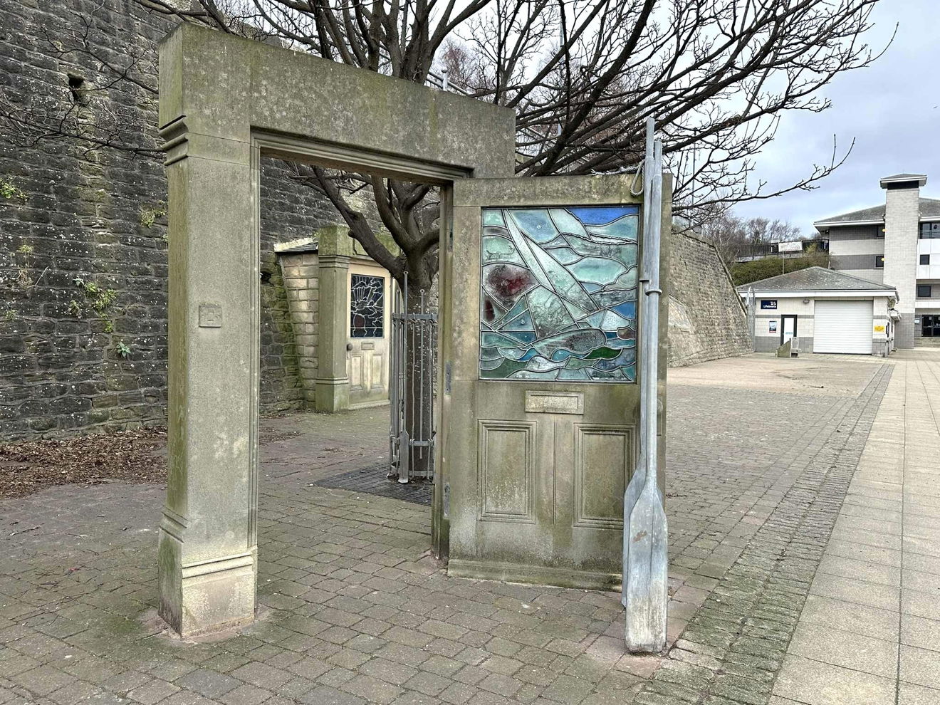 Passing Through was installed in 1997 and there is some nice stained glasswork with nautical themes.
