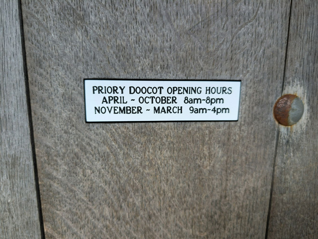 The Priory Doocot's accessible hours are advertised on the door and are currently: