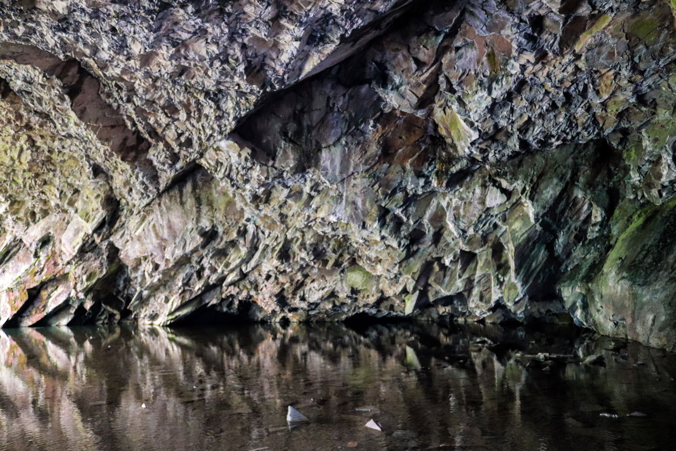 Unlike the open cast slate quarries that dot the area, the miners here were following a seam that ran into the fell side, meaning they had to hollow out the mountain from within, which left the huge cavern we see today. When quarrying became unviable and the miners left, the cave was left to be reclaimed by nature. Rainwater began to flood the floor, creating a shallow lake, while mosses and ferns colonised the rock faces.