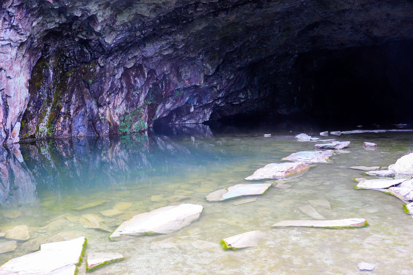To get into the heart of the cave you will need to navigate the stepping stones which get you through the shallow lake. If you take a few moments to stay still and watch you might notice the population of Minnows that live there. Be warned though, there are supposedly Leeches that live there too! You will also become aware of the Jackdaws and other birds that nest within the cave, their calls echoing off the walls.