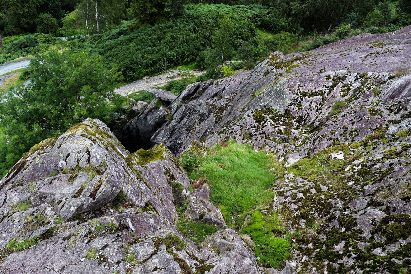 A large man-made cavern near Rydal Water in the Lake District, created by slate quarrying in the 19th century.