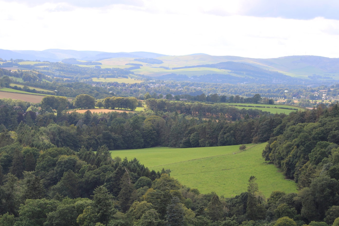 After studying and living in Edinburgh, Walter Scott returned to the borders where he was truly happiest and moved to a country house near Selkirk with his wife in 1804. When the lease on this house ended in 1811, he bought Cartley Hole Farm close to Melrose and renamed it Abbotsford House which became a very grand and beautiful home for his family. Scott's View is just a few miles east of Abbotsford House and Scott would regularly stop to take in the views as he was heading home, his horses allegedly stopping there after a while without command. When he died in 1832 it was reported that his funeral cortege passed by his regular haunt and his horses stopped one last time to allow Scott to appreciate the view.