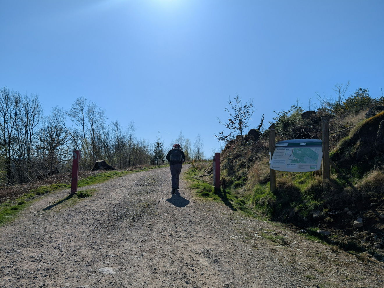 Start by following the good track as it winds up the hill and ignore a turning to the left. When you reach a gate, rather than going through it, take the smaller path to the right, which winds up through a birch wood.