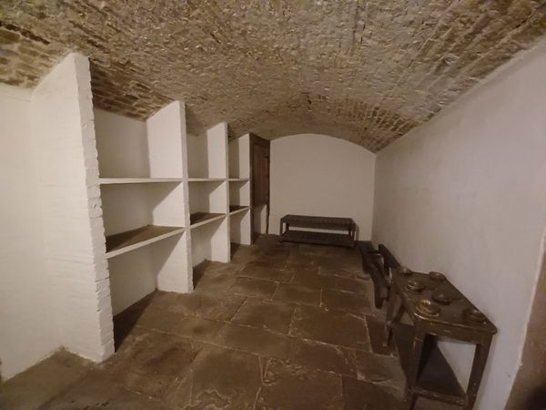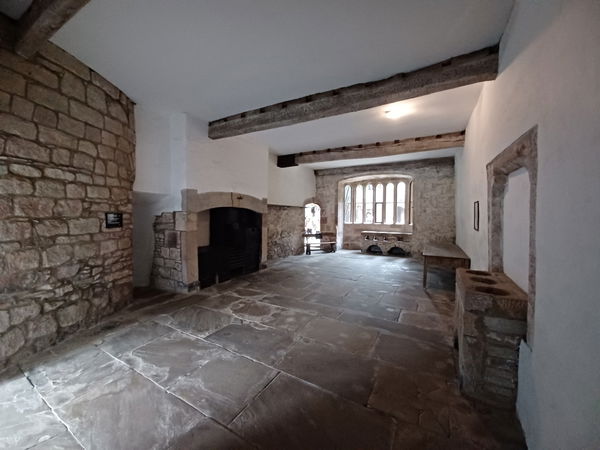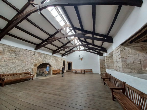 The great hall is the largest room in the castle and would have been used for feasting, entertainment and political meetings. It is a long, rectangular room with a high vaulted ceiling. The walls are lined with fireplaces and windows, and there is a central dais for the lord and his family.