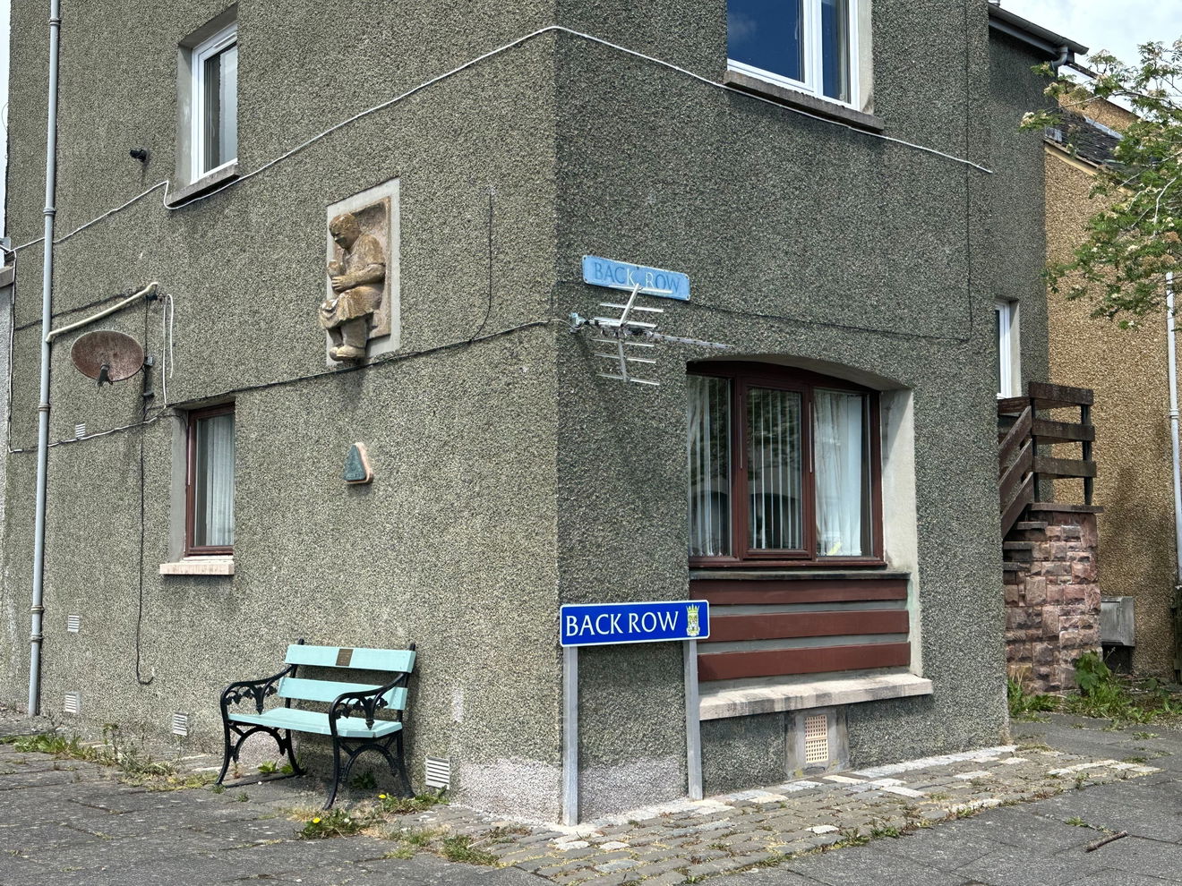 I was drawn to his outwardly cheery looking disposition, sitting high up on the side of a house on the corner of Back Row and Kirk Wynd, perusing passersby as he quality checks his brogues.