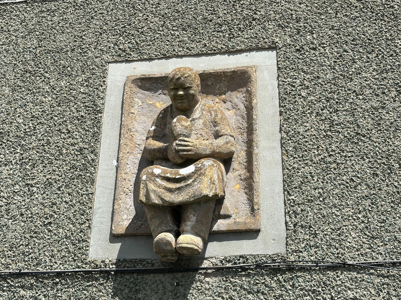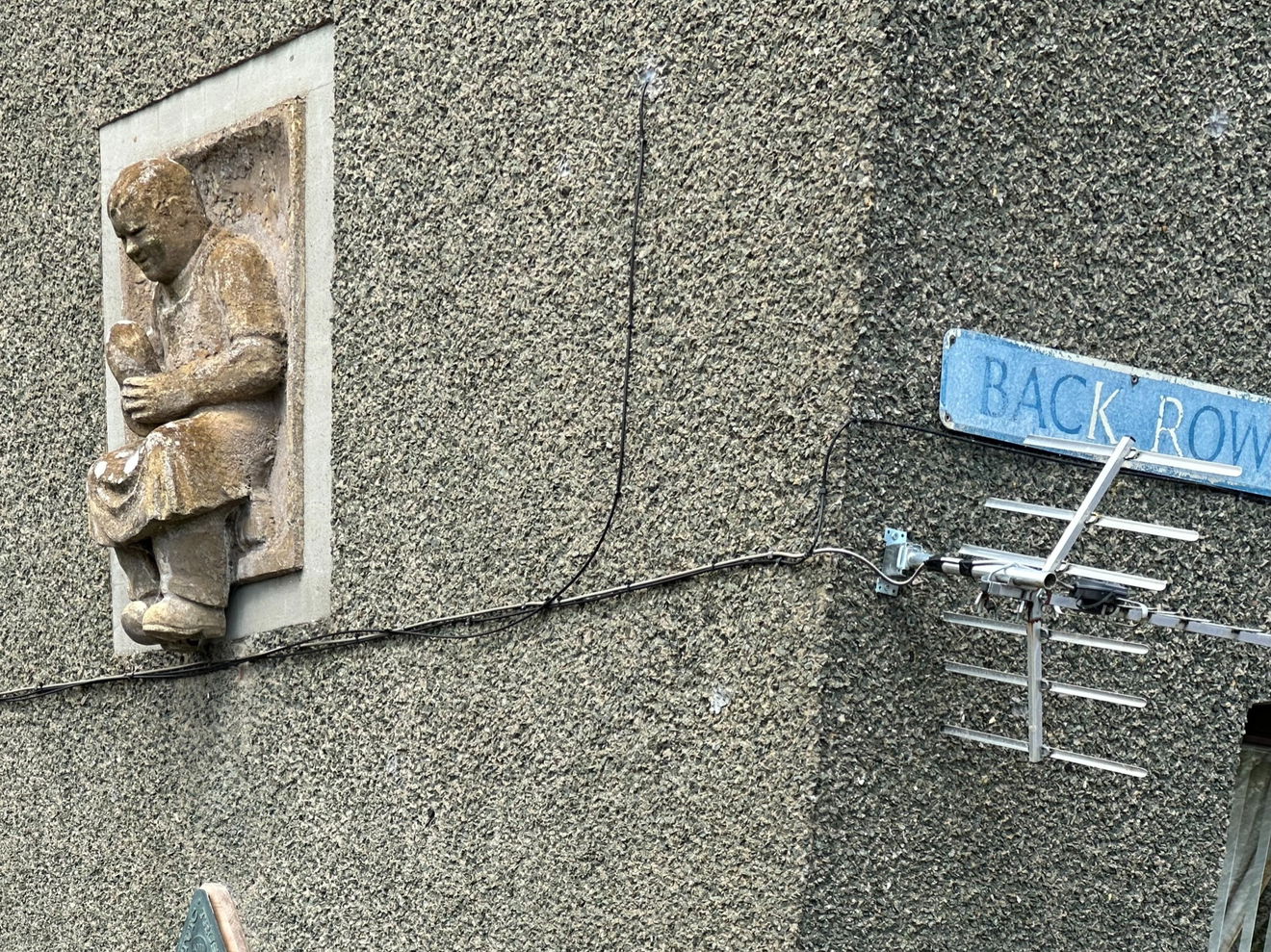 A sculpture sitting on the gable end of a house in Selkirk commemorating the history and heritage of the shoemaking industry in this small Scottish town.