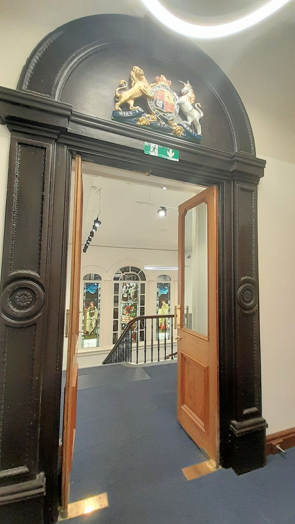 The exterior of the building is impressive and reveals its original character. Outside it is guarded by 'The Golden Lion' which belonged to a hotel of the same name and was originally painted red - Ha! Only joking, originally painted gold, it was moved here after the hotel was demolished in 1973.